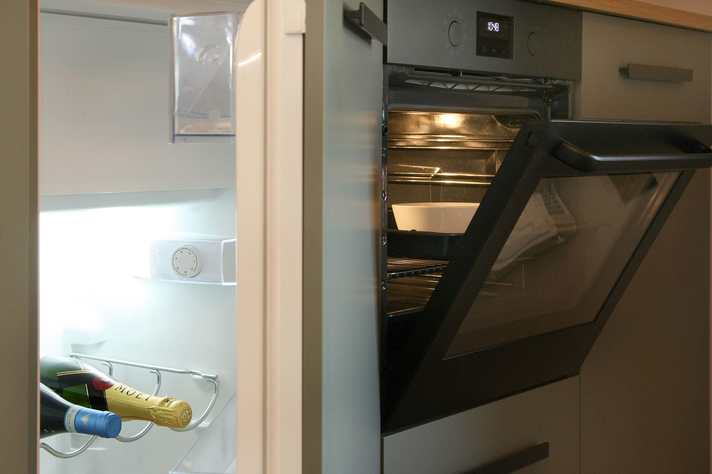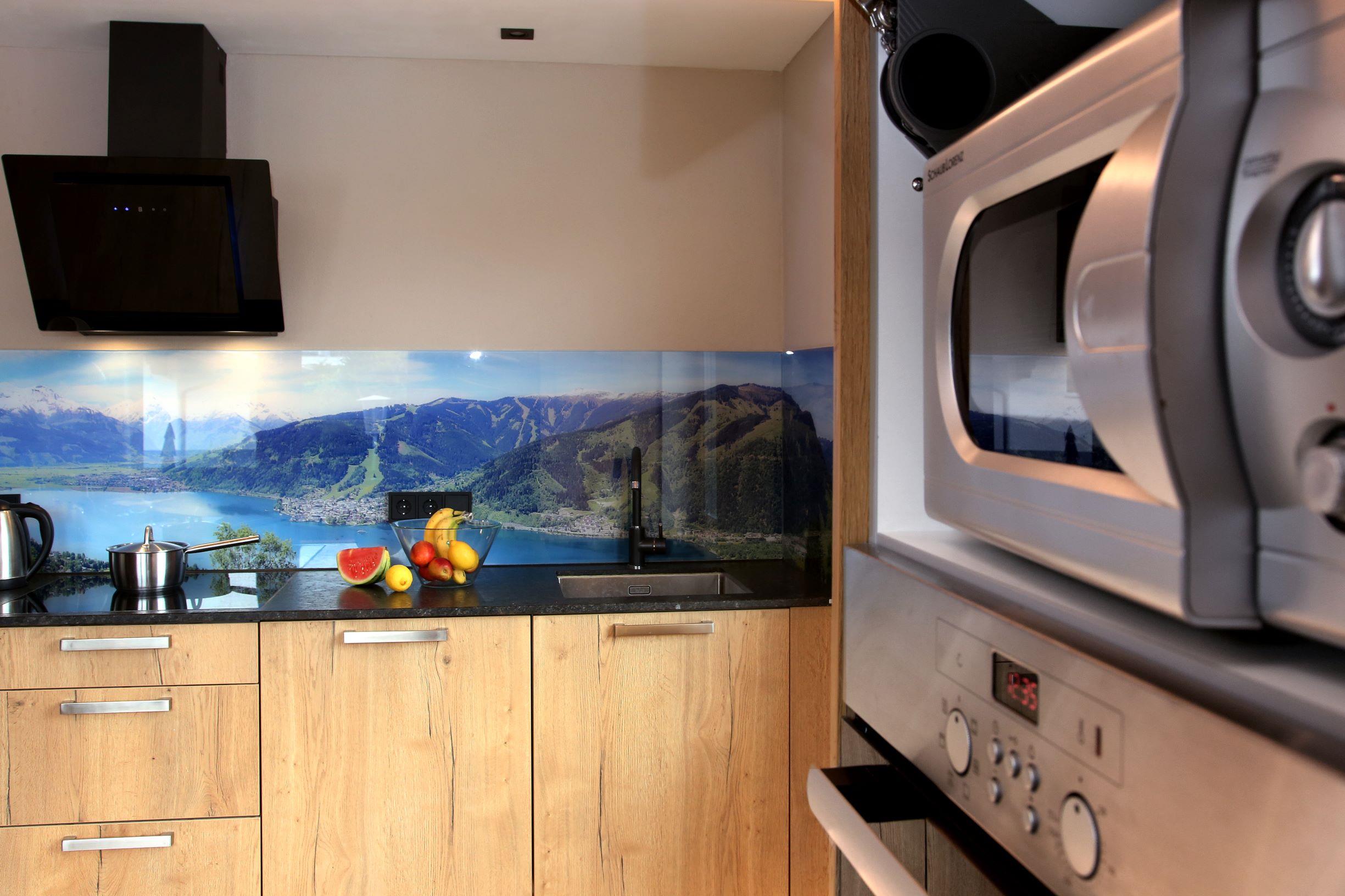 • Küche mit Geschirrspüler, Mikrowelle, Backofen