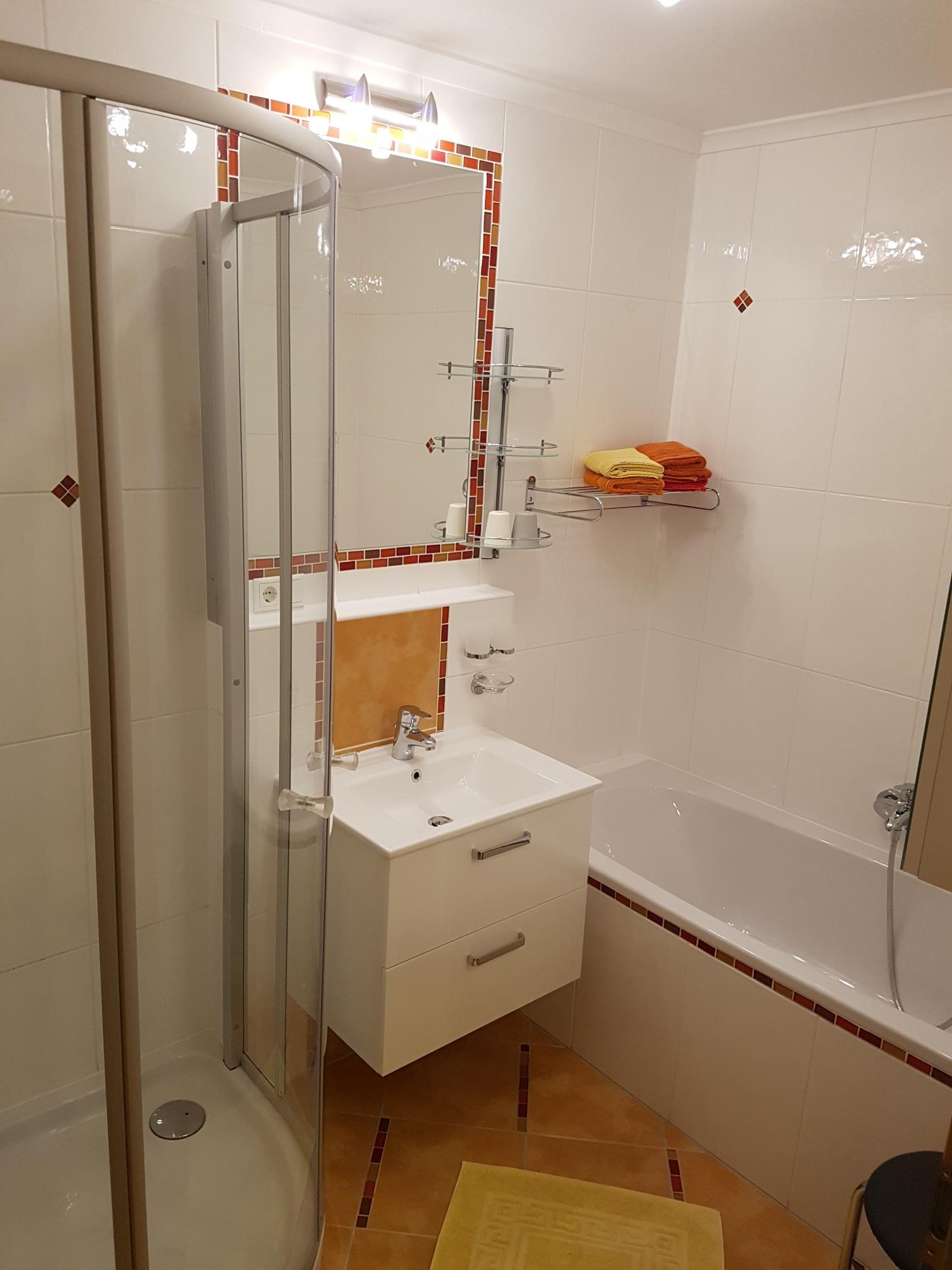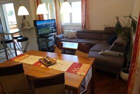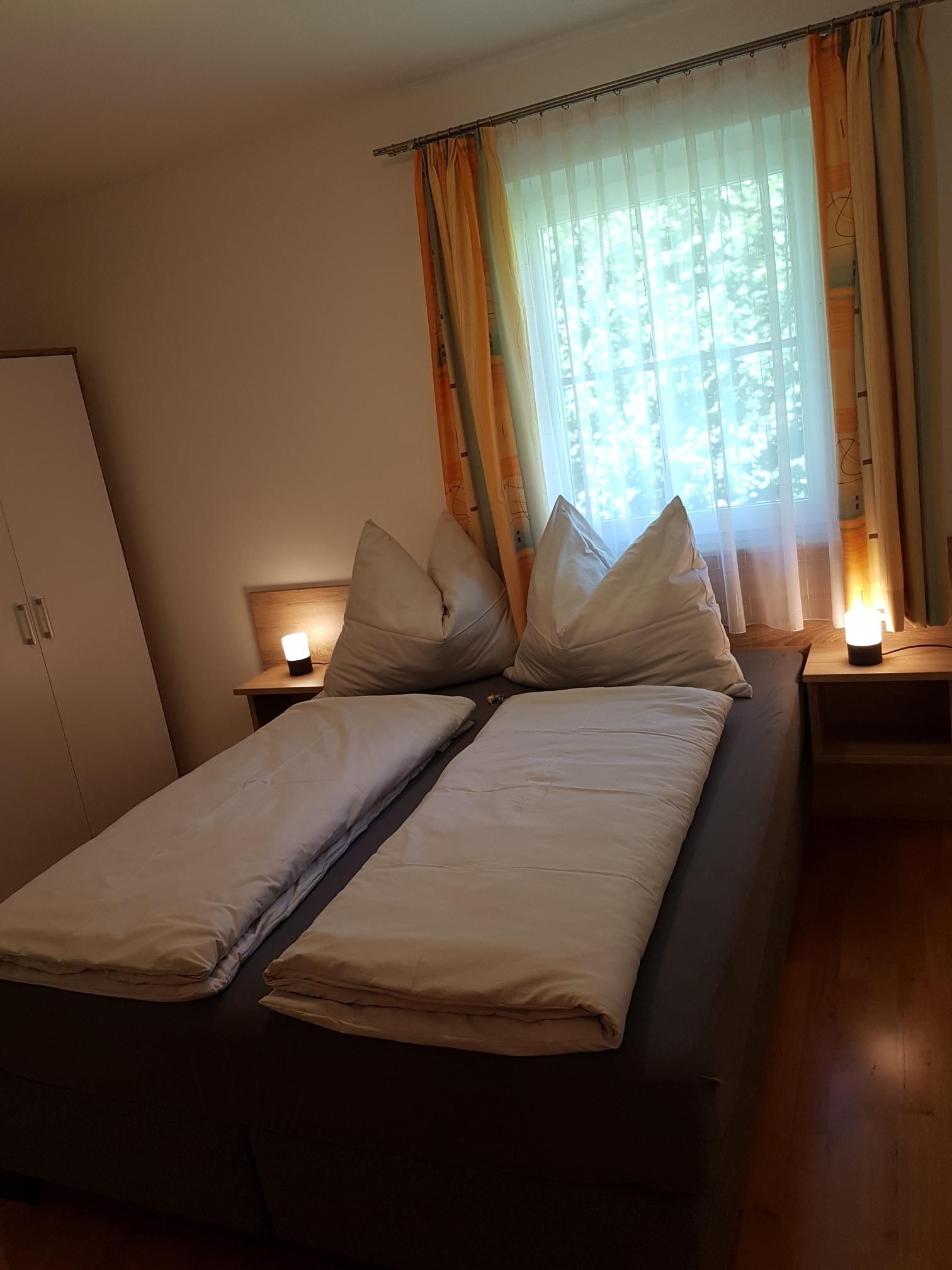 Dieses Apartment verfügt über 2 Schlafzimmer (wenn für 2 Personen angefragt wird, dann ist der Preis vergünstigt, da grundsätzlich von einer Bereitstellung von einem Schlafzimmer ausgegangen wird, optional kann das 2 Schlafzimmer bei Bedarf dazu gebucht werden), eine Küche mit einem Kühlschrank und einem Backofen mit Kochfeld, einen Flachbild-TV, einen Sitzbereich und ein Bad mit einer Badewanne und Dusche. Das WC ist separat. Handtücher und Bettwäsche werden im Apartment gestellt. Die Waschmaschinenbenutzung ist gegen Aufpreis möglich - dies muss aber vorab abgeklärt werden.