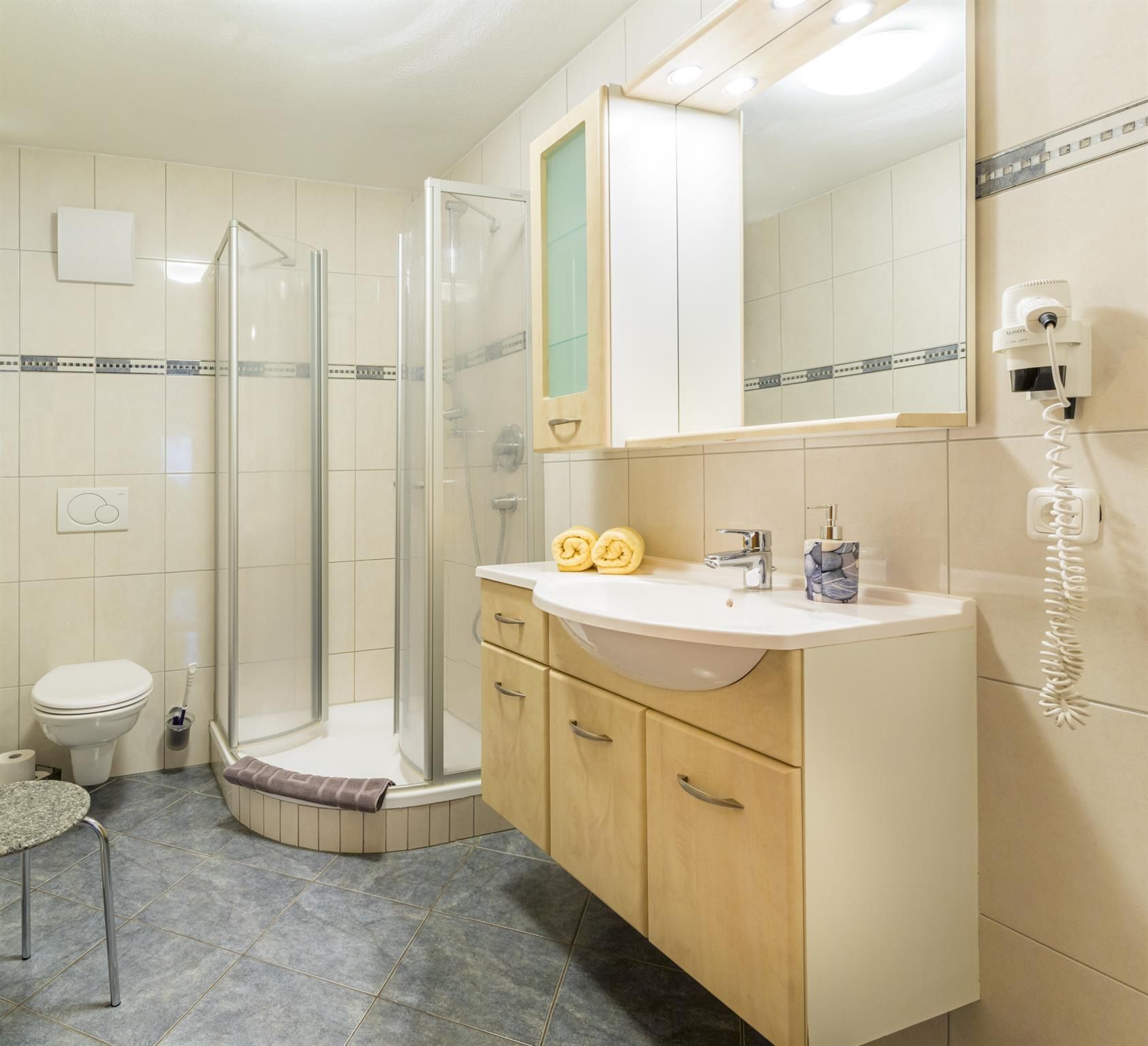 Großzügige Ferienwohnung mit Wohlfühlambiente Drei getrennte Schlafzimmer, komplett eingerichteter Küche mit Kaffeemaschine und Wasserkocher, Geschirrspüler und E-Herd mit Backofen, Mikrowelle gemütliche Essecke, TV, Radio, Telefon, gratis WLAN, Dusche/WC, Föhn, Flur mit Garderobe und Balkon mit Ausicht auf die umliegenden Steinberge sind bei uns Standard.