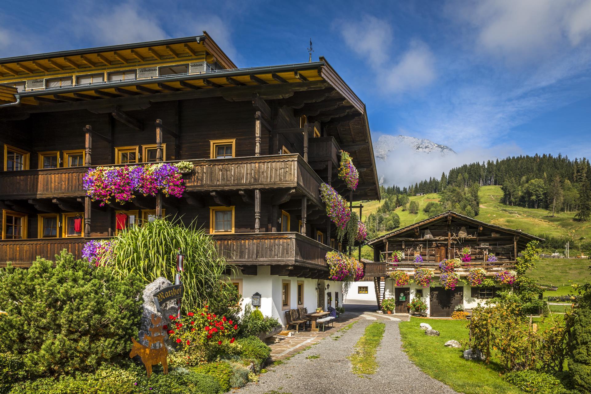 Herzlich Willkommen am Matzhof! Genießen Sie einen unvergesslichen Urlaub in unseren Appartement die zum Wohlfühlen einladen. Wer wahres Urlaubsfeeling auf einem bewirtschafteten Bauernhof mit vielen Tieren, selbsterzeugten Produkten und neu renovierten Ferienwohnungen mit 4 Blumen Komfort erleben will, der ist auf dem Matzhof im Salzburger Land gut aufgehoben. Der Matzhof befindet sich in Leogang im schönen Bundesland Salzburg, liegt im Talboden und besteht aus Wiesen, Wald. In einem gemütlichen 20 Minuten Spaziergang erreichen Sie das Ortszentrum von Leogang. Mit 10 Minuten Fahrzeit (gratis Skibus hält vor dem Haus) steigen Sie ein in den Skicirkus Saalbach Hinterglemm Leogang. L-loipe, Spazier- und Wanderwege, Radweg!
