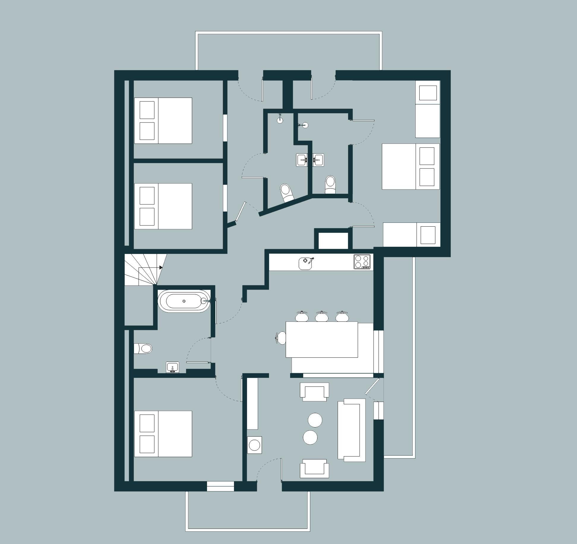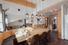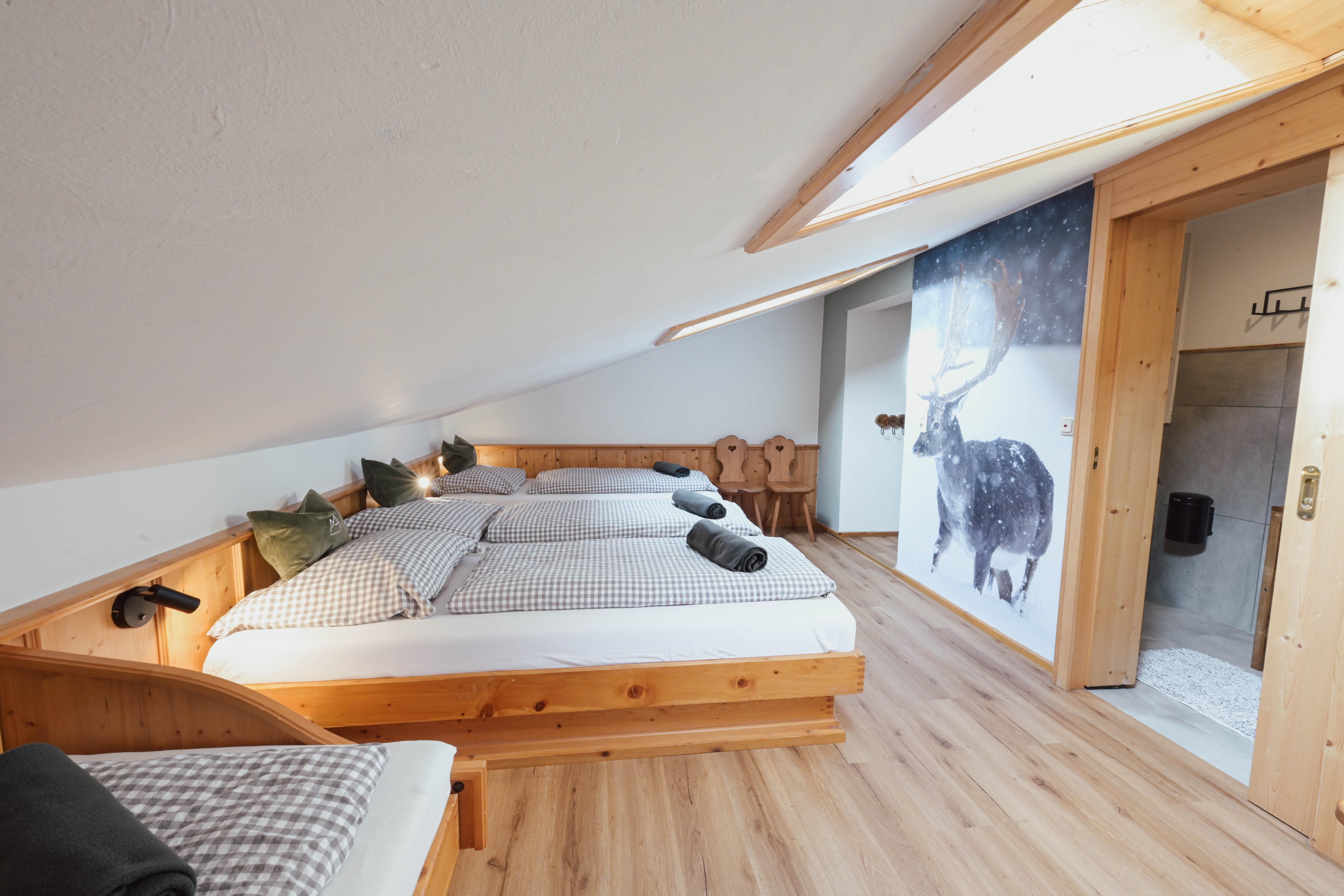 Im zweiten Stock finden Sie das Apartment Sadnig: geräumig, gemütlich und perfekt für Familien oder Gruppen von bis zu 10 Personen. Genießen Sie die Ruhe, und den Blick auf die Berge! Das große Wohnzimmer mit Holzofen und Lounge-Sofas ist der ideale Ort zum Entspannen, während die voll ausgestattete Küche zum gemeinsamen Kochen einlädt. Es gibt drei Schlafzimmer mit Boxspringbetten, ein gemütliches Vierbettzimmer (bei Kindern sehr beliebt) und drei Badezimmer mit Regenduschen. Im Sommer können Sie direkt in die Natur wandern oder mit dem E-Bike fahren, im Winter liegen Pisten, Loipen und Rodelbahnen gleich um die Ecke. Gruppenfreundlich, stimmungsvoll und mit herrlicher Aussicht!