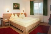Verfügbar sind 2 Doppelzimmer mit Dusche/WC, Fön, TV, gratis W-Lan und Holzfußboden. Buchbar auch als Einzelzimmer oder mit Zusatzbett. Blick nach Osten auf die große Wiese, die Berge und zum Spielplatz. Frühstück gegen Aufzahlung ab € 6.00