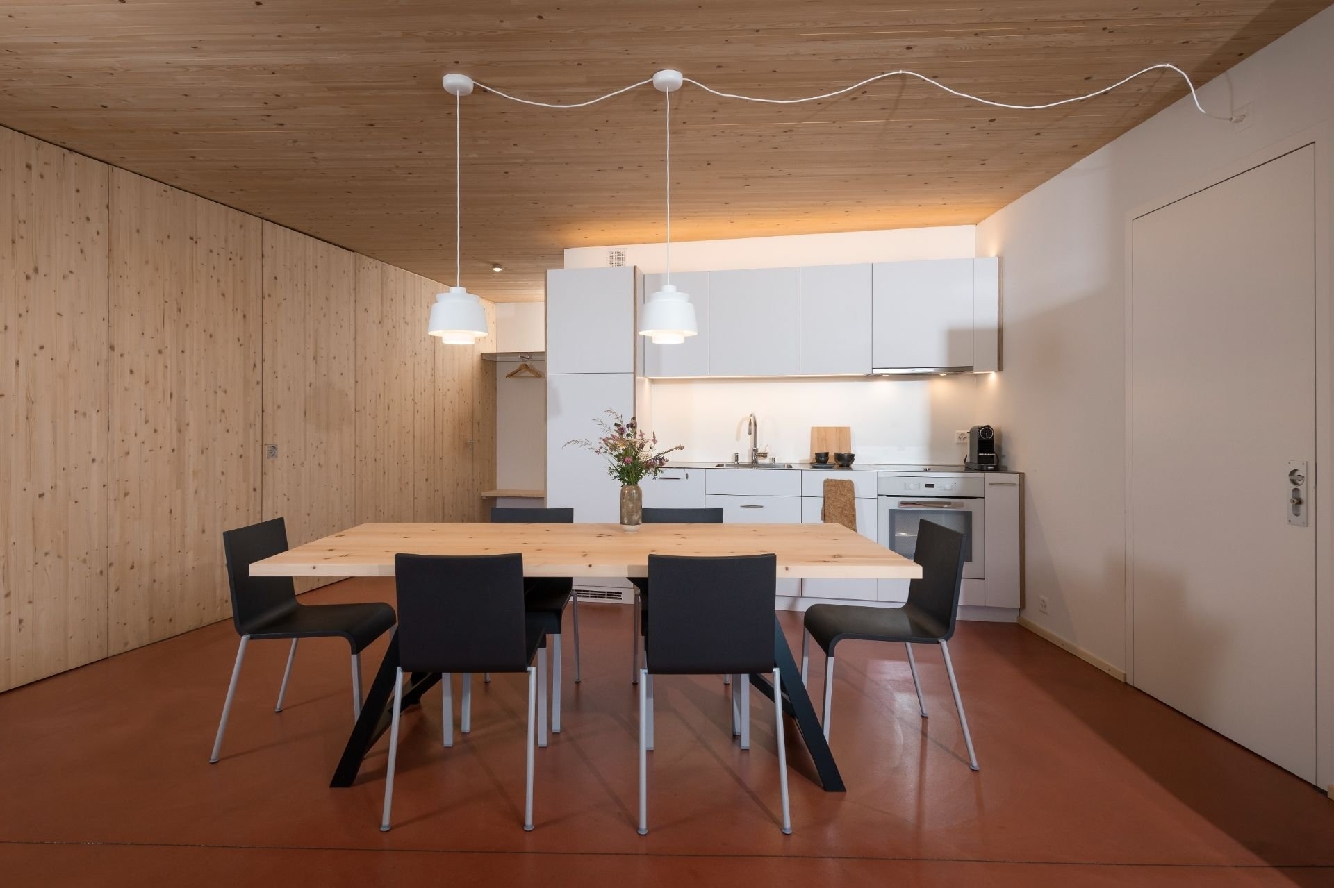 Chasa Laina, Ferienwohnung GLÜNA im Bergdorf Sent im Engadin.Die Chasa Laina bietet grosszügiges Wohnen mit Alpenblick. Die zwei 3,5-Zimmer Ferienwohnungen SULAI und GLÜNA sind mit hochwertigen Materialen und einer kontrollierten Lüftung suchen Sie unseren Rückzugsort und tauchen Sie ein ins Abenteuer.Wiedereröffnung im Juni 2022 nach Renovation.
