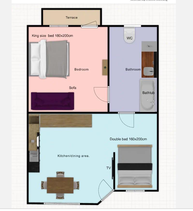 Die Wohnung Nr. 4 befindet sich im 2. Stock, ca. 120 m ², und besteht aus drei separaten Schlafzimmern, drei Duschbädern, einer Küche/einem Essbereich und einem großen Balkon. Alle Zimmer sind zum Hinterhof ausgerichtet. In jedem Schlafzimmer befindet sich ein Kingsize-Boxspringbett (180 x 200 cm).