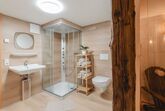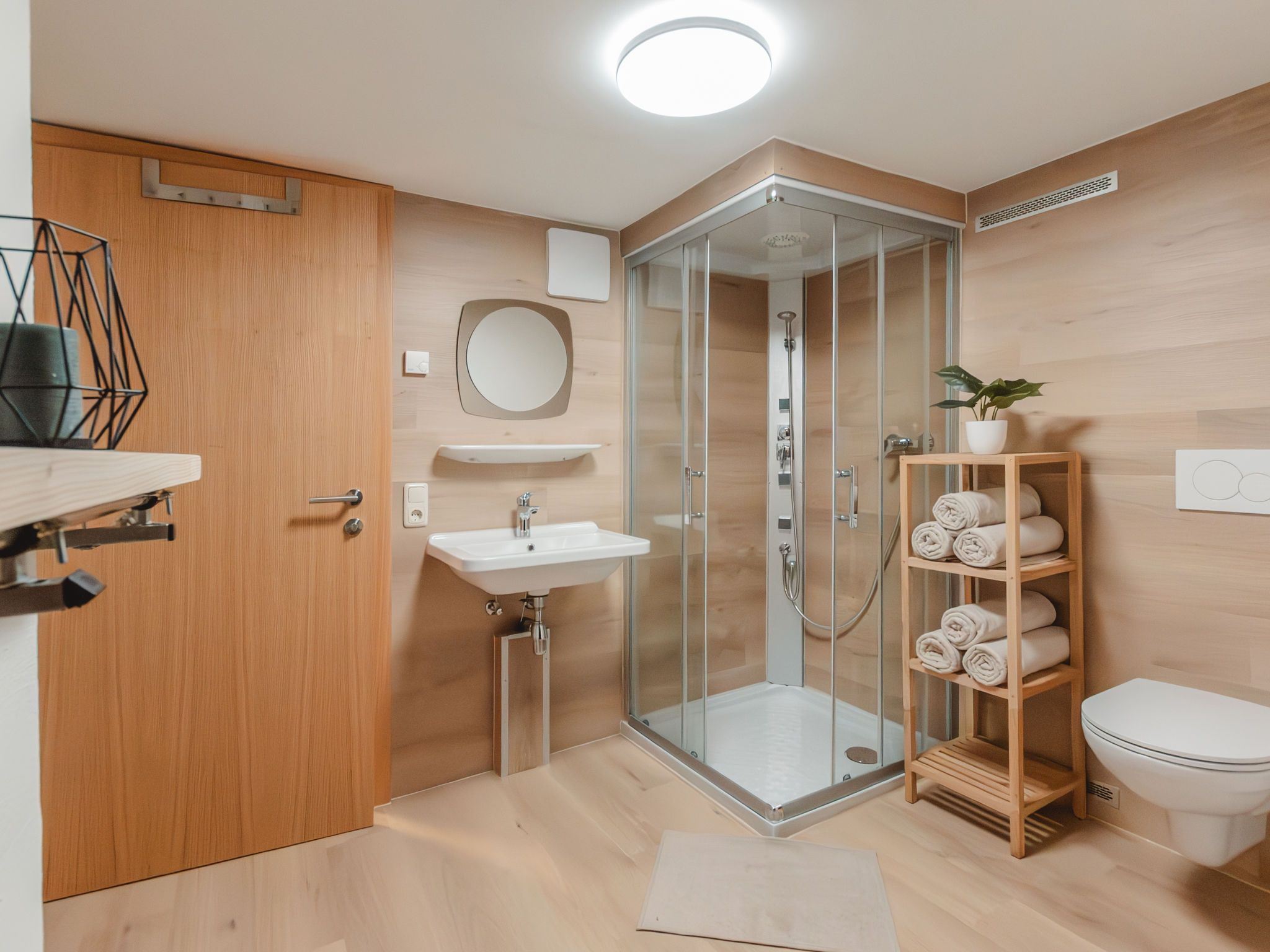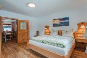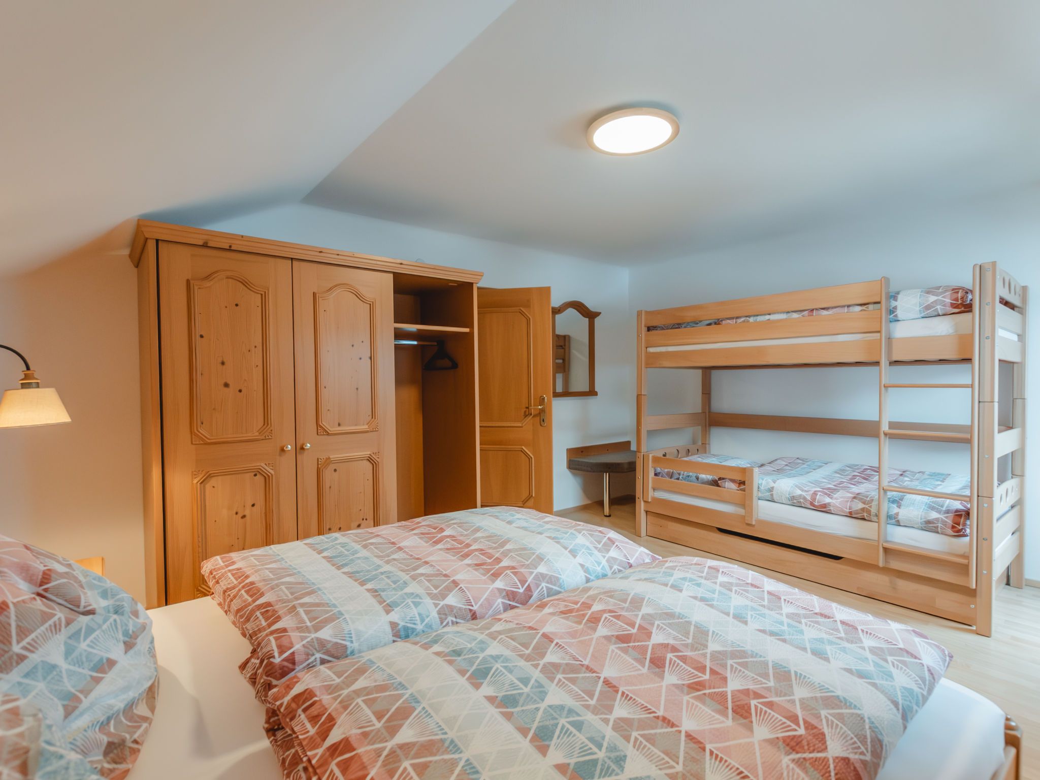 5-Zimmer-Haus 140 m2 auf 2 Stockwerken. Geräumig und hell, komfortabel und gemütlich eingerichtet: Eingang. 2 Doppelzimmer. Küche (Backofen, Geschirrspüler, 4 Glaskeramikplatten, Toaster, Wasserkocher, Mikrowelle, elektrische Kaffeemaschine, Racletteofen) mit Esstisch. Dusche/WC. Unteres Geschoss: Dusche/WC, Sauna. Obergeschoss: offenes Wohnzimmer mit Sat-TV, Internationale TV-Sender und Flachbildschirm. 1 Zimmer mit 1 x 2 Etagenbetten, 1 Doppelbett. Ausgang zum Balkon. 1 Doppelzimmer. Dusche/WC. Holzdielenboden. Balkon, Terrasse, grosser Gartensitzplatz. Terrassenmöbel, Balkonmöbel, Gartengrill (mobil), Liegestühle (4). Zur Verfügung: Waschmaschine, Sauna, Bügeleisen, Fliegengitter, Kinderhochstuhl, Babybett bis 2 Jahre, Haartrockner. Internet (Wireless LAN, gratis). E-Ladestation. Bitte beachten: Nichtraucher-Haus. Rauchmelder, Feuerlöscher. ACHTUNG: bei Belegung mit weniger Personen stehen nicht alle Wohneinheiten zur Verfügung! Haustiere sind nicht gestattet. 50420-011050-2023