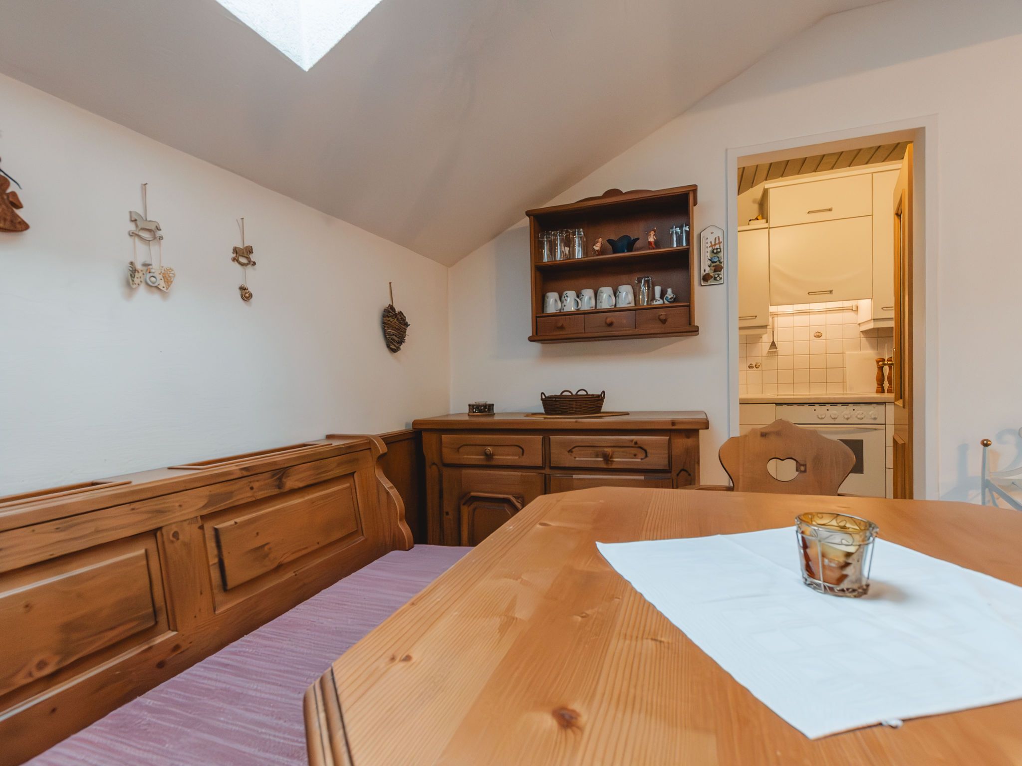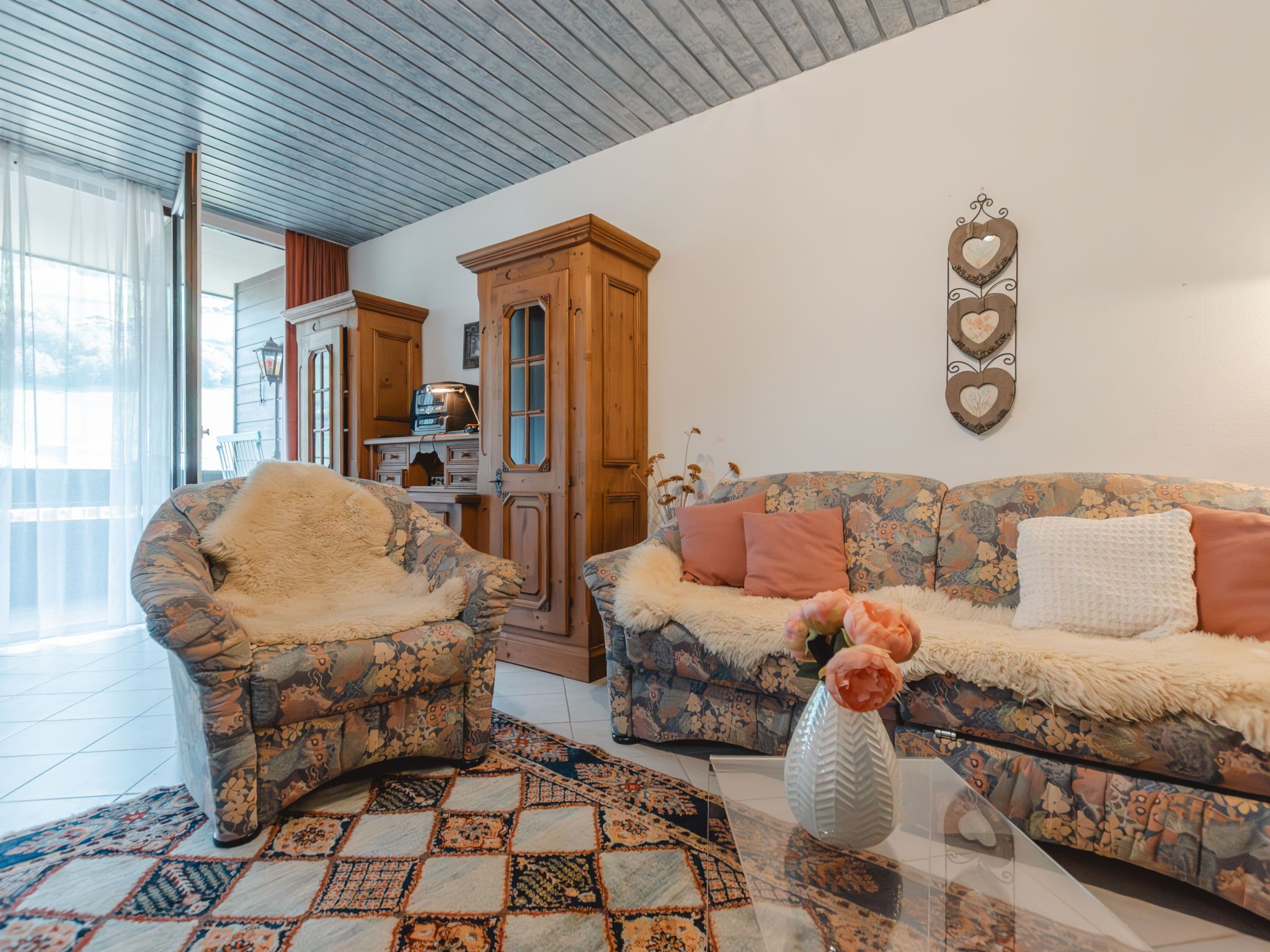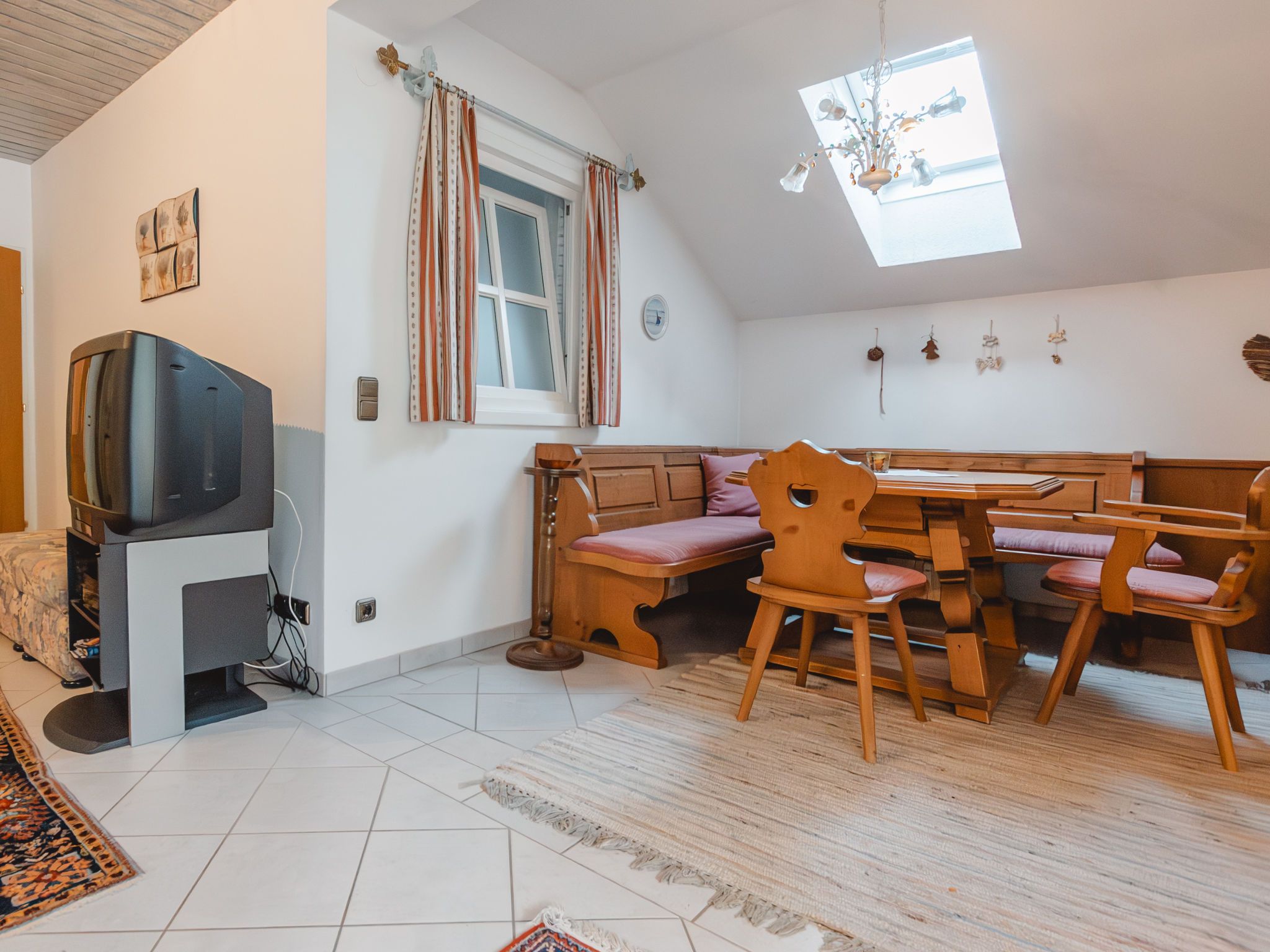 Alex Top 68, 2-Zimmer-Wohnung 75 m2, im Obergeschoss. Geräumig und hell, komfortabel und gemütlich eingerichtet: Eingang. Wohn-/Esszimmer mit 1 Doppeldiwanbett, Essecke, Kabel-TV und Radio. Ausgang zum Balkon. 1 abgeschrägtes Doppelzimmer mit Dachfenster. Kleine Küche (Backofen, Geschirrspüler, 4 Glaskeramikplatten, Toaster, Wasserkocher, elektrische Kaffeemaschine). Bad/WC. Grosser Balkon. Balkonmöbel. Schöne Sicht auf die Berge. Zur Verfügung: Waschmaschine. Garage. Bitte beachten: geeignet für Familien. Rauchmelder. 50402-000709-2020