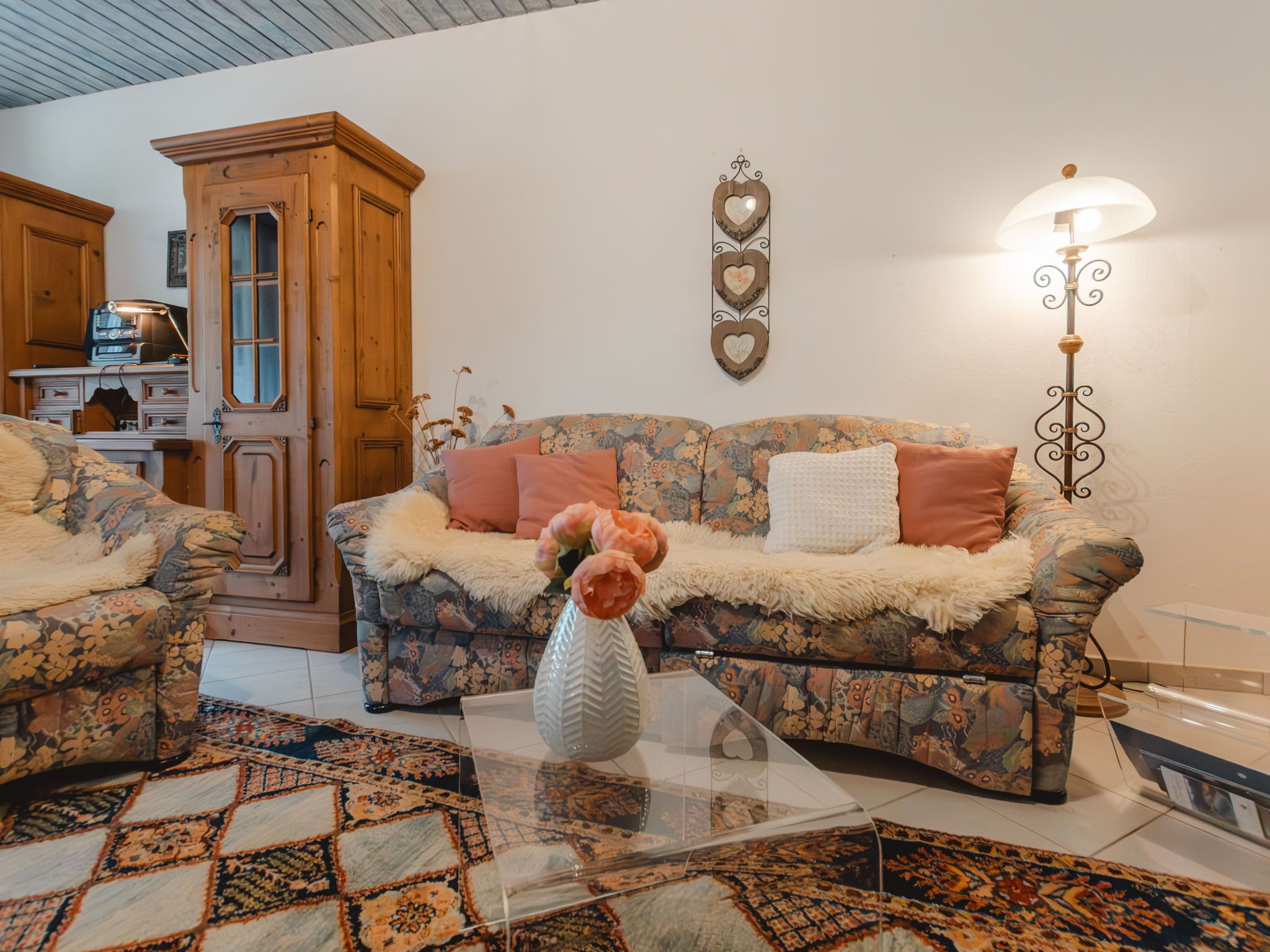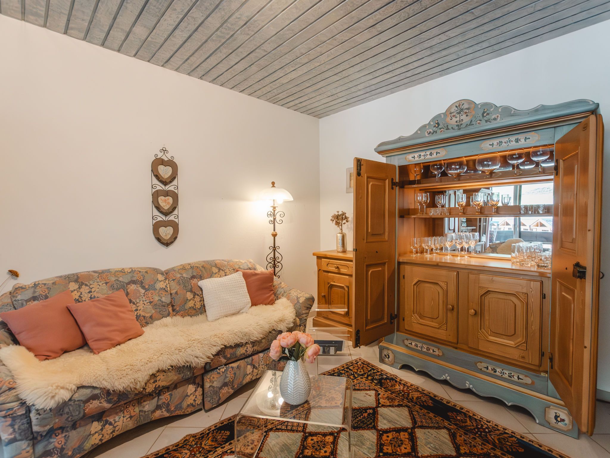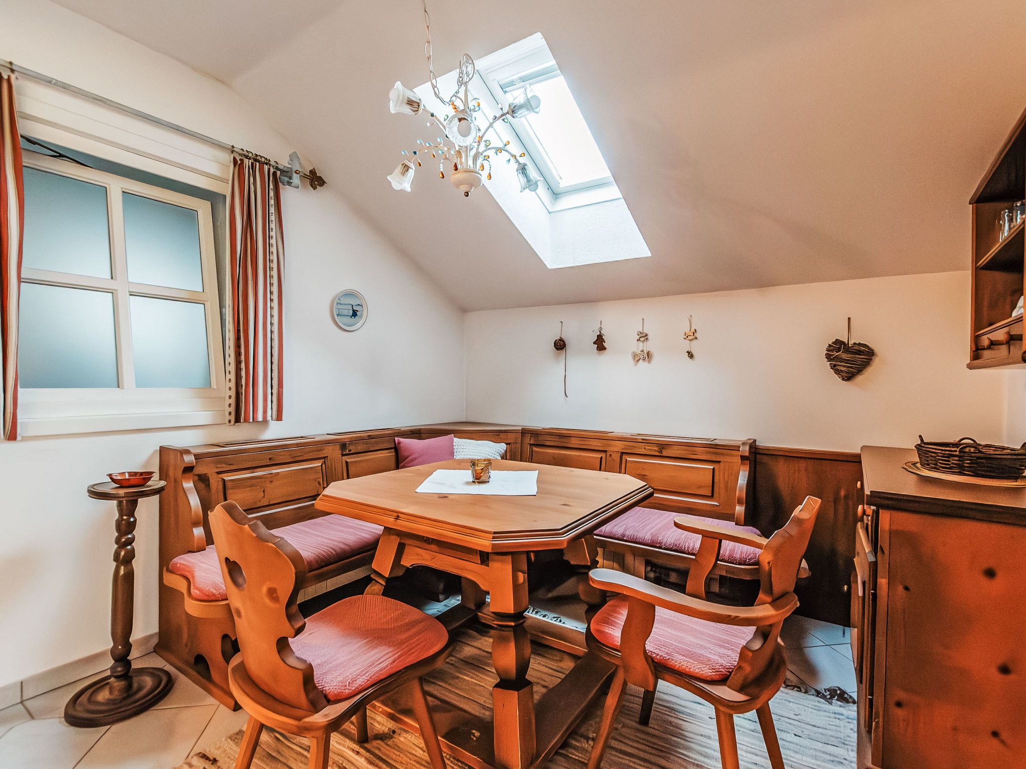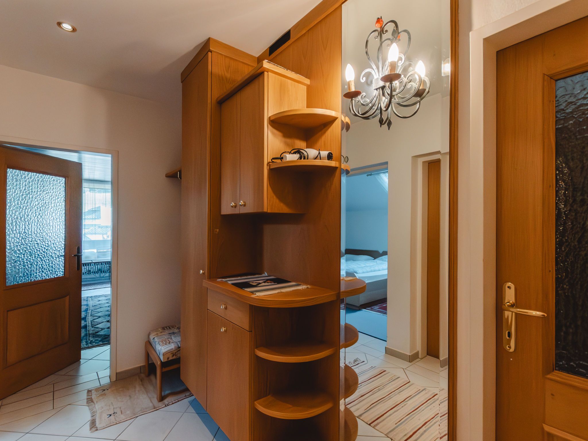 Alex Top 68, 2-Zimmer-Wohnung 75 m2, im Obergeschoss. Geräumig und hell, komfortabel und gemütlich eingerichtet: Eingang. Wohn-/Esszimmer mit 1 Doppeldiwanbett, Essecke, Kabel-TV und Radio. Ausgang zum Balkon. 1 abgeschrägtes Doppelzimmer mit Dachfenster. Kleine Küche (Backofen, Geschirrspüler, 4 Glaskeramikplatten, Toaster, Wasserkocher, elektrische Kaffeemaschine). Bad/WC. Grosser Balkon. Balkonmöbel. Schöne Sicht auf die Berge. Zur Verfügung: Waschmaschine. Garage. Bitte beachten: geeignet für Familien. Rauchmelder. 50402-000709-2020