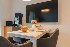 Unser Glück in den Bergen, 3-Zimmer-Wohnung 55 m2 im 3. Stock. Geräumig und hell, vollständig renoviert im Jahre 2019, sehr modern und geschmackvoll eingerichtet: grosser Eingang. Wohn-/Esszimmer mit Esstisch und Kabel-TV (Flachbildschirm), Stereoanlage. Ausgang zum Balkon. 1 Doppelzimmer. Ausgang zum Balkon. 1 Zimmer mit Schiebetür. Offene Küche (Backofen, Geschirrspüler, 4 Glaskeramikplatten, Grill, Dampfgarer, Racletteofen, Fondue Set (Käse)). Bad/WC, Dusche/WC. Holzdielenboden. 2 Balkone. Balkonmöbel. Schöne Sicht auf das Tal. Zur Verfügung: Internet (Wireless LAN, gratis). Parkplatz. Bitte beachten: geeignet für Familien. Nichtraucher-Unterkunft. Rauchmelder. 50403-000496-2023