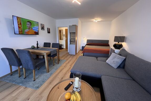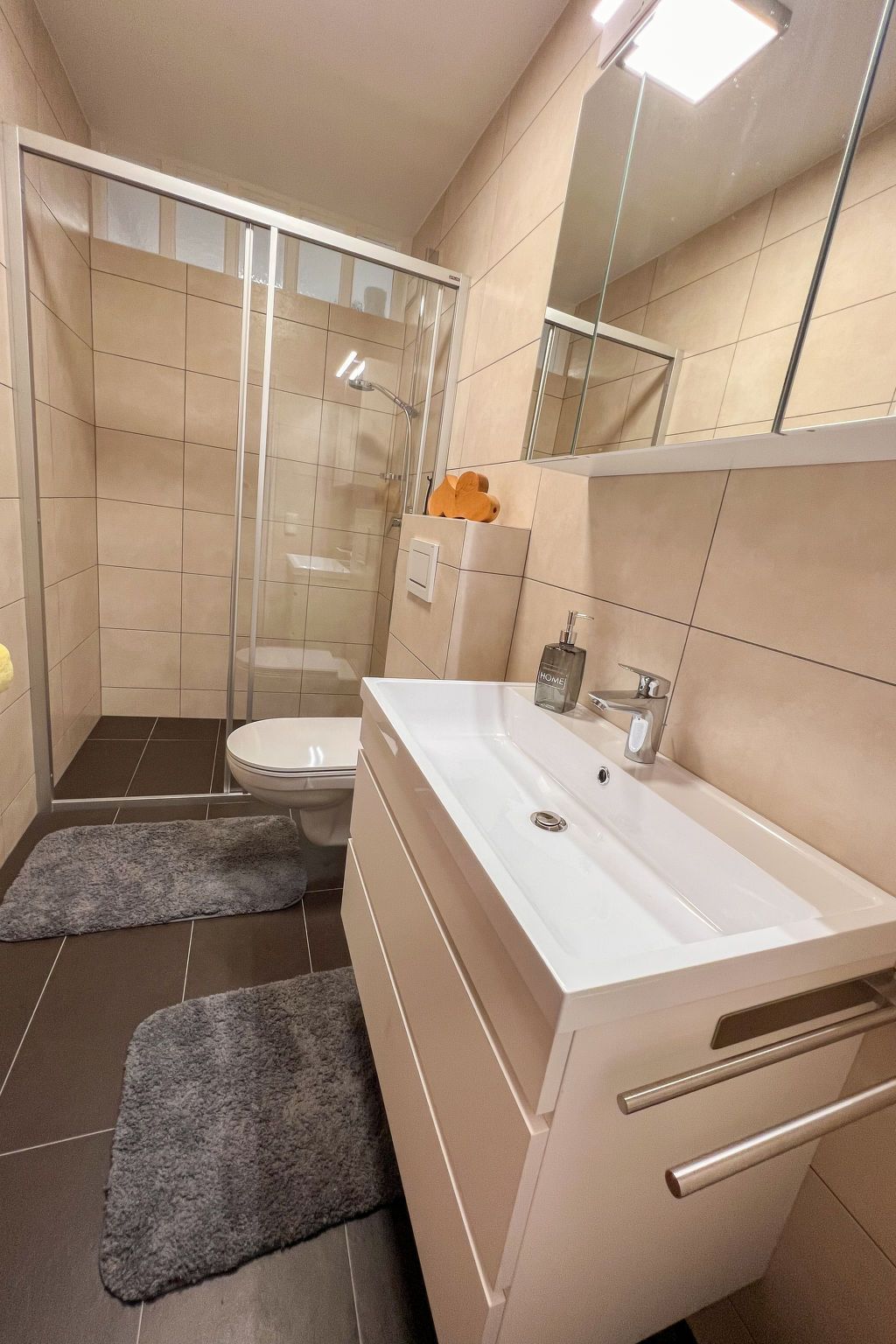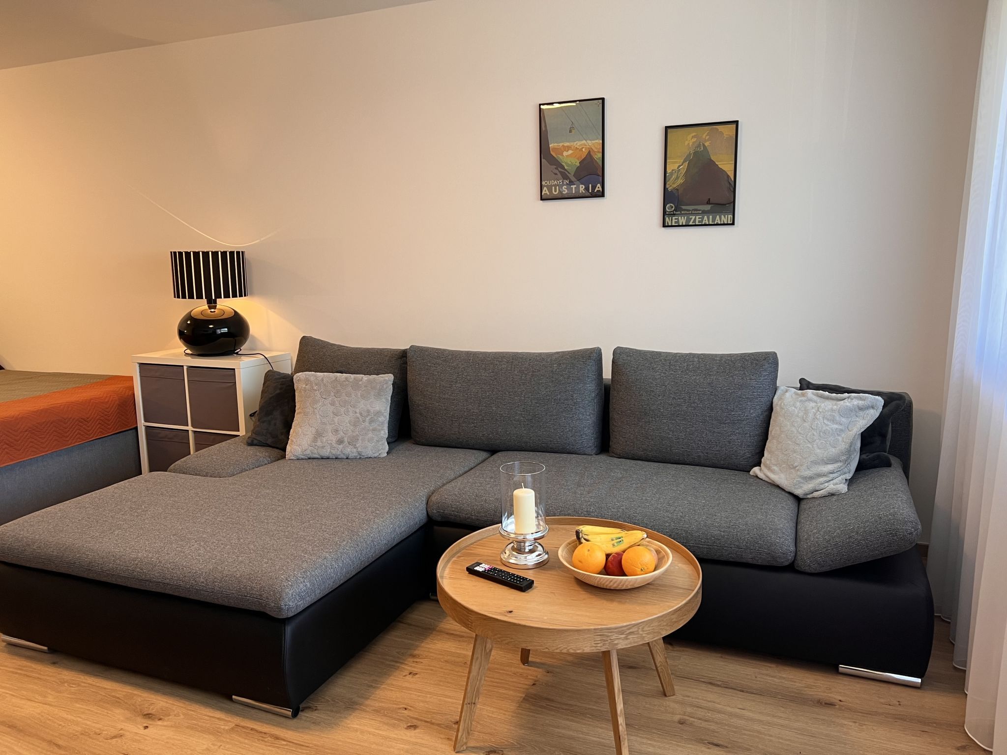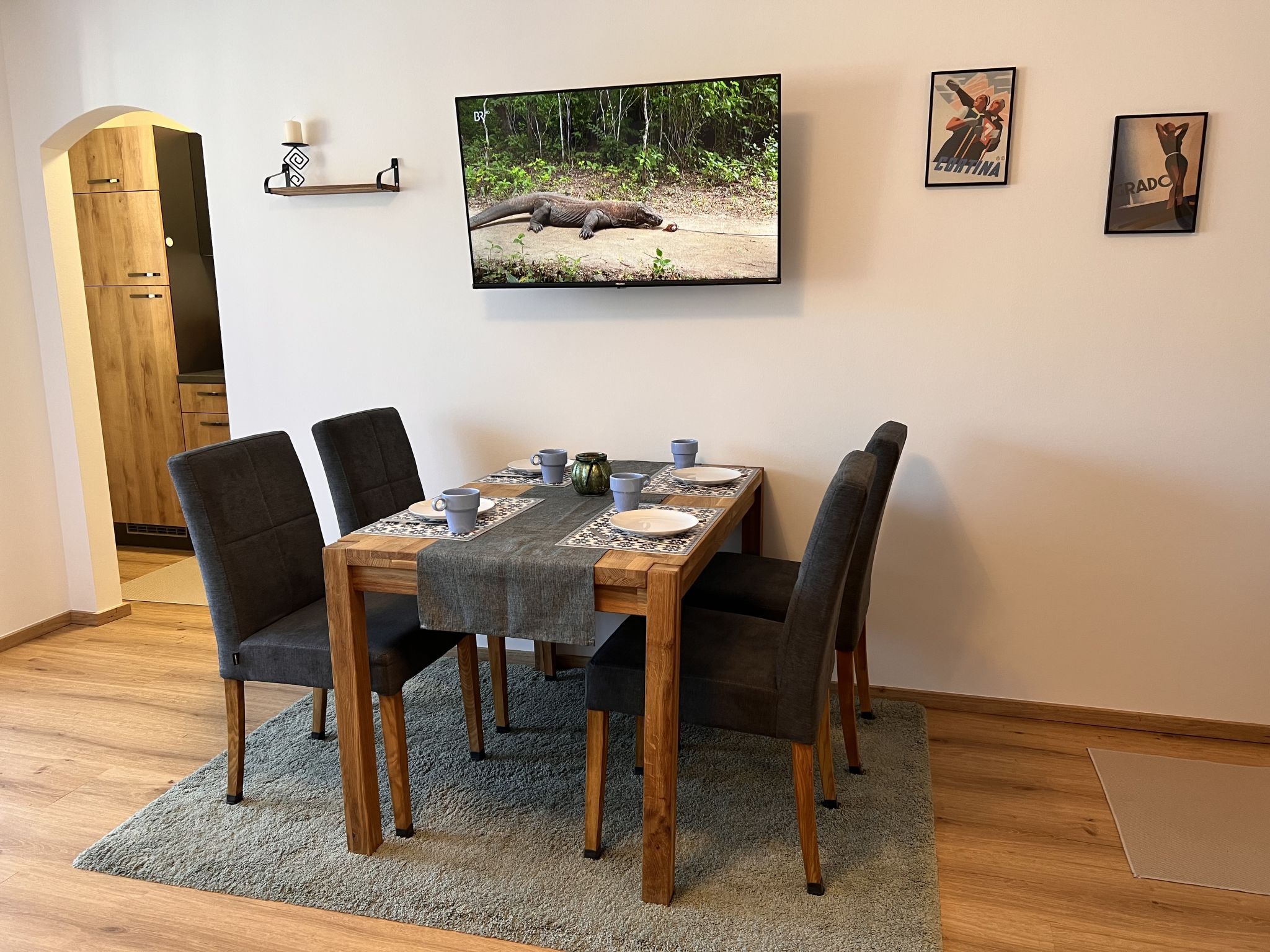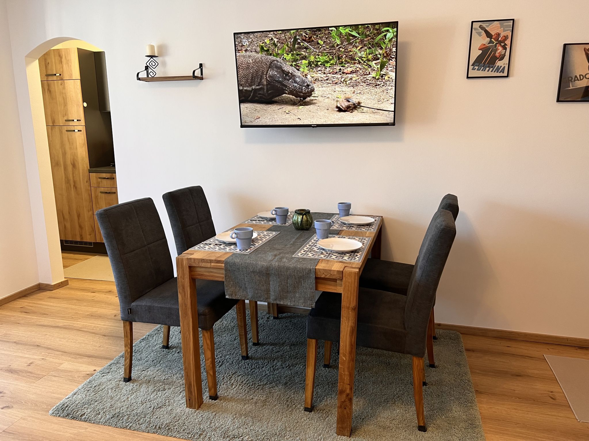 Apartment Martin, 1-Zimmer-Wohnung 40 m2 im 2. Stock. Hell, renoviert im Jahre 2023, sehr modern und gemütlich eingerichtet: Eingang. 1 Zimmer mit 1 Diwanbett, 1 Doppelbett, Esstisch, Kabel-TV, Internationale TV-Sender und Flachbildschirm. Ausgang zum Balkon. Kleine Küche (Backofen, Geschirrspüler, 4 Glaskeramikplatten, Wasserkocher, elektrische Kaffeemaschine). Dusche/WC. Holzdielenboden. Balkon 3 m2. Balkonmöbel. Zur Verfügung: Haartrockner. Internet (Wireless LAN, gratis). Bitte beachten: Nichtraucher-Unterkunft. Kein Fahrstuhl. 50618-000284-2023