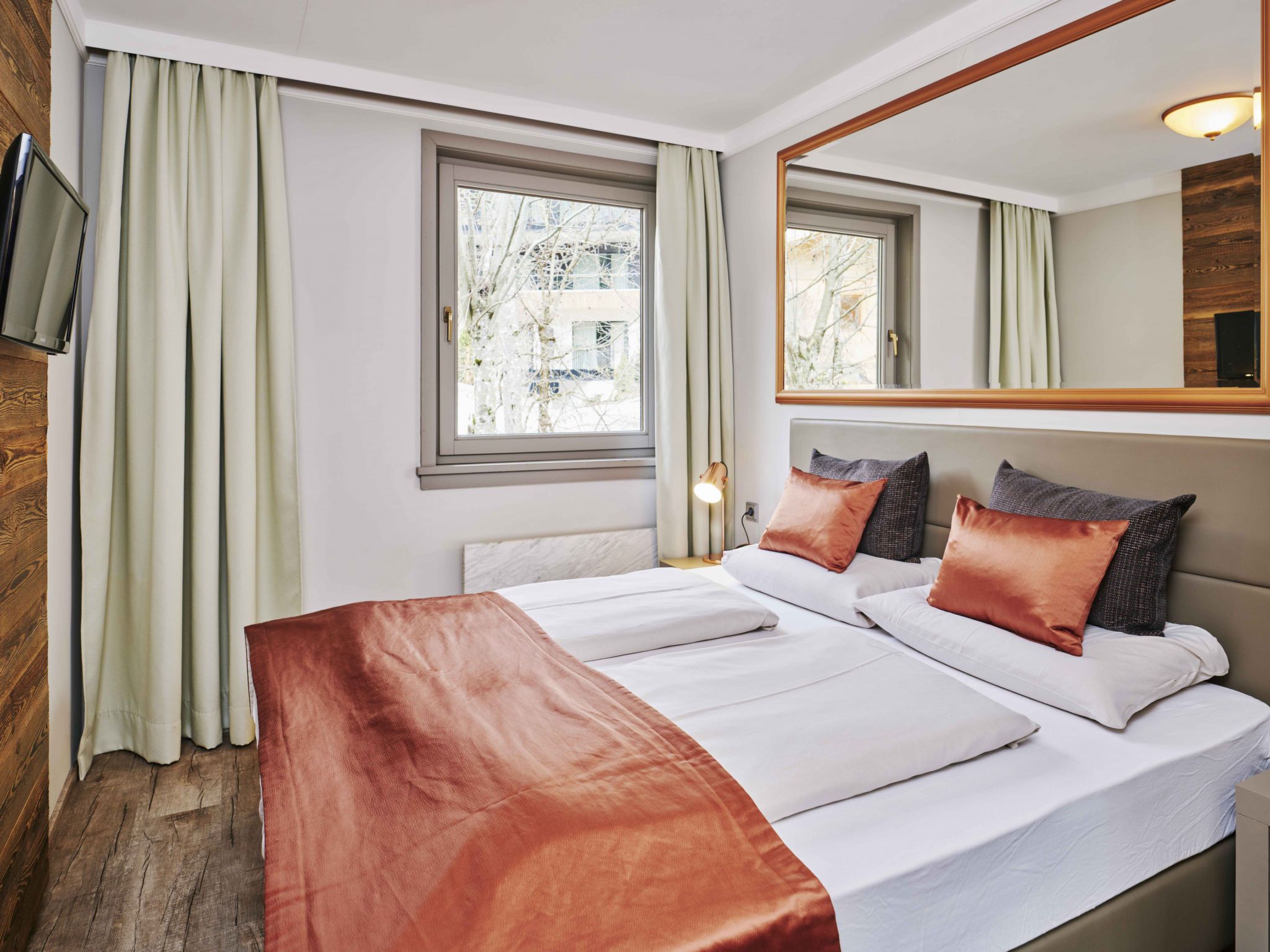 Juniorsuite bis zu 4 P &Wellnessbereich, 1-Zimmer-Wohnung 32 bis 38 m2. Komfortabel und geschmackvoll eingerichtet: Wohn-/Schlafzimmer mit 1 Doppeldiwanbett, 1 Doppelbett, Esstisch und Sat-TV (Flachbildschirm). (Wasserkocher, elektrische Kaffeemaschine). Dusche/WC. Holzdielenboden. Balkon. Balkonmöbel. Schöne Sicht auf die Skipiste und die Landschaft. Zur Verfügung: Internet (WLAN, gratis). Bitte beachten: Nichtraucher-Unterkunft. Beim Mietobjekt handelt es sich um ein Typenhaus bzw. Um eine Typenwohnung. Diese Unterkunft hat keine Küche, nur einen Kühlschrank. 50618-010991-2022