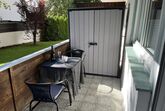 1-Zimmer-Wohnung 33 m2, im erhöhten Erdgeschoss. Vollständig renoviert im Jahre 2023, komfortabel und modern eingerichtet: Wohn-/Schlafzimmer mit 1 Doppelbett (2 x 90 cm, Länge 200 cm), Esstisch und Kabel-TV (Flachbildschirm). Ausgang zum Balkon. Küche (Geschirrspüler, 4 Glaskeramikplatten, Toaster, Wasserkocher, Mikrowelle, elektrische Kaffeemaschine). Dusche/WC. Balkon. Balkonmöbel. Sicht auf den Garten. Zur Verfügung: Haartrockner. Bitte beachten: Nichtraucher-Unterkunft. Rauchmelder.