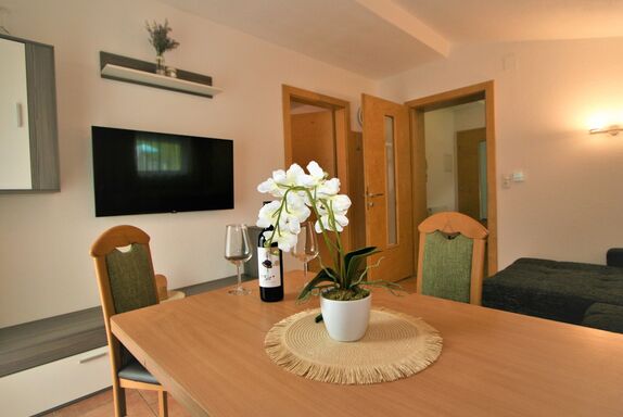 Franz, 2-Zimmer-Wohnung 50 m2 im 2. Stock. Gemütlich eingerichtet: 1 Doppelzimmer. Wohn-/Esszimmer mit 1 Doppeldiwanbett und Sat-TV (Flachbildschirm). Kleine Küche im Eingang (4 Kochplatten, Backofen, Wasserkocher, elektrische Kaffeemaschine). Dusche/WC. E-Heizung. Kleiner Balkon. Balkonmöbel. Schöne Sicht auf die Berge. Bitte beachten: Nichtraucher-Unterkunft. Maximal 1 Haustier/Hund erlaubt.