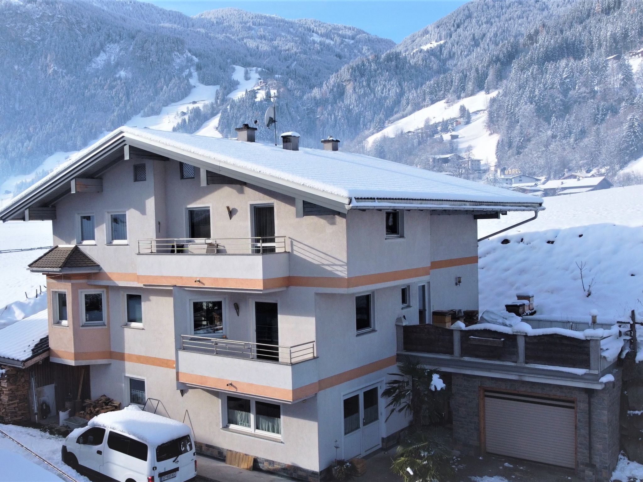 Schwendau 3 km von Mayrhofen: Gemütliches Zweifamilienhaus auf 2 Stockwerken. Am Ortsrand, 500 m vom Zentrum von Schwendau, 8 km vom See, 1.5 km vom Skigebiet. Im Hause: Einstellraum für Fahrräder, Skiraum, Zentralheizung, Skischuhtrockner. Parkplatz. E-Ladestation. Lebensmittelgeschäft 50 m, Restaurant 200 m, Bushaltestelle Skibus 50 m, Freibad 200 m, Hallenbad 4 km, Badesee 8. Golfplatz (18 Loch) 16 km, Tennis 200 m. Nahe gelegene Sehenswürdigkeiten: Innsbruck 64 km. Bekannte Skigebiete sind gut erreichbar: Bergbahnen Mayrhofen 1.5 km. Bekannte Seen in der Umgebung sind gut erreichbar: Schlitterer See 23 km. Bitte beachten: Weitere Unterkünfte sind buchbar. Ferienwohnung Ref. AT6283.350.1 befindet sich auf dem gleichen Grundstück.