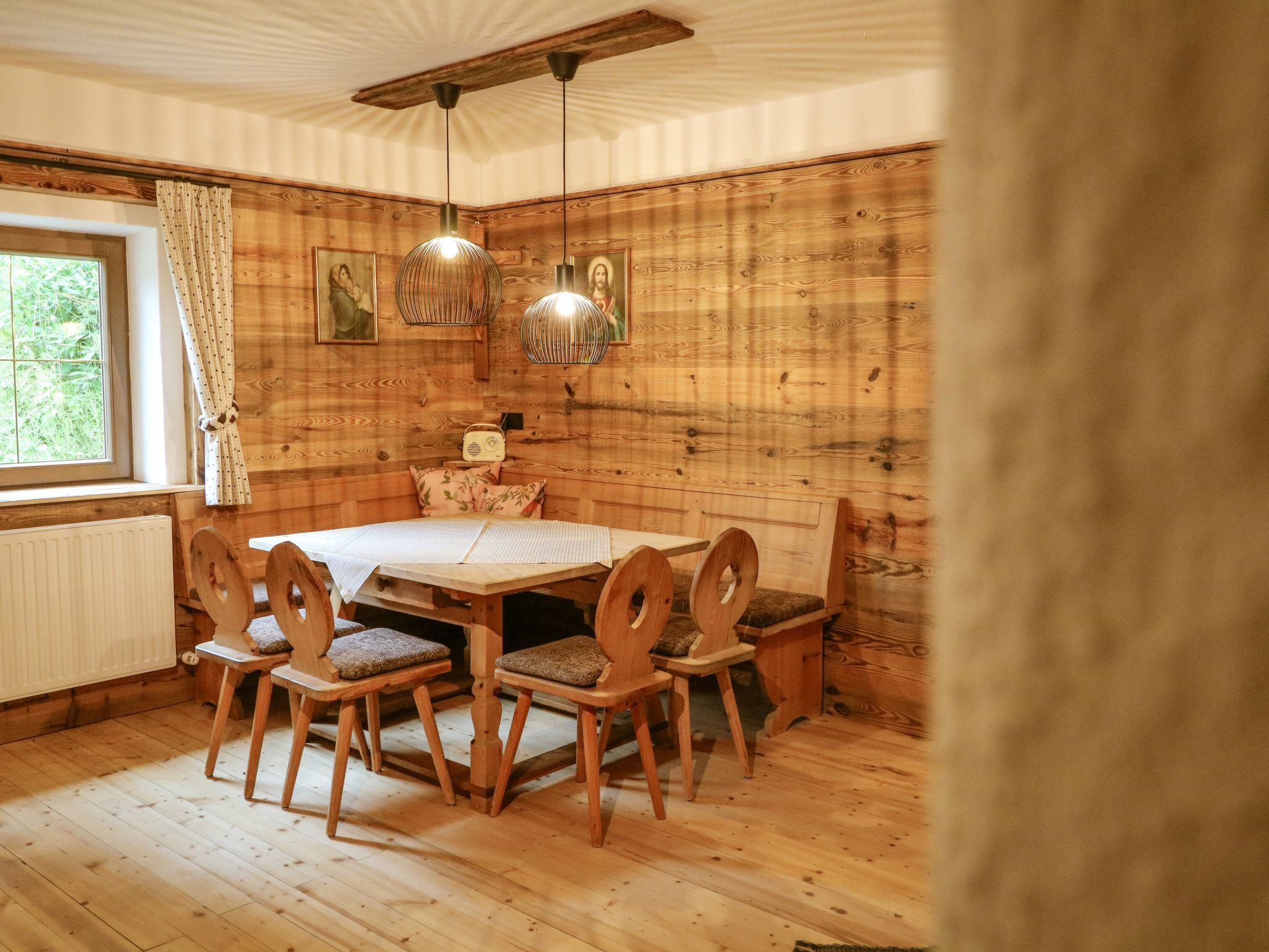 4-Zimmer-Haus 200 m2. Wohn-/Schlafzimmer mit 1 Diwanbett, Kabel-TV und Kachelofen. Grosse Wohnküche (Backofen, Geschirrspüler, 4 Induktionskochplatten, Toaster, Wasserkocher, elektrische Kaffeemaschine, Kapseln für die Kaffeemaschine (Cafissimo) extra) mit Esstisch, Kachelofen und Holzofen. Sep. WC. Obergeschoss: 2 Doppelzimmer. 1 Zimmer mit 2 x 2 Etagenbetten. Dusche, sep. WC, Doppelwaschbecken. Holzdielenboden. Komfortable Einrichtung im Landhausstil. Sehr schöne Sicht auf die Berge, das Tal und die Landschaft. Zur Verfügung: Haartrockner.