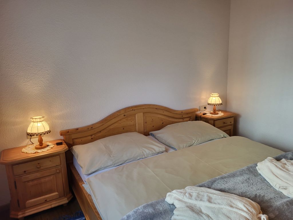 Sonnenschein B, 2-Zimmer-Wohnung 40 m2, unteres Geschoss. Objekt geeignet für 2 Erwachsene + 2 Kinder. Geräumig und hell, komfortabel und gemütlich eingerichtet: 1 Doppelzimmer. Wohnküche (4 Kochplatten, Backofen, Geschirrspüler, Toaster, Wasserkocher, Mikrowelle, elektrische Kaffeemaschine) mit 1 Doppeldiwanbett, Esstisch und Sat-TV (Flachbildschirm). Dusche/WC. Heizung. Kleiner Gartensitzplatz. Terrassenmöbel. Bitte beachten: geeignet für Familien. Nichtraucher-Unterkunft. Maximal 1 Haustier/Hund erlaubt. Eigener Eingang.