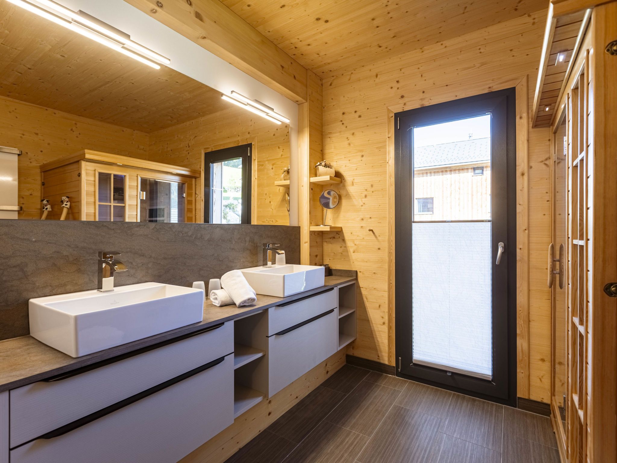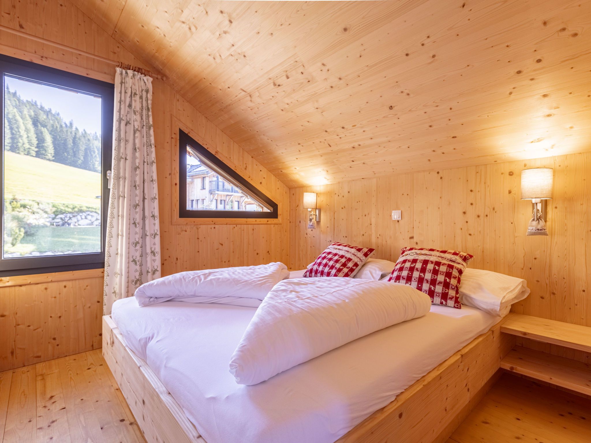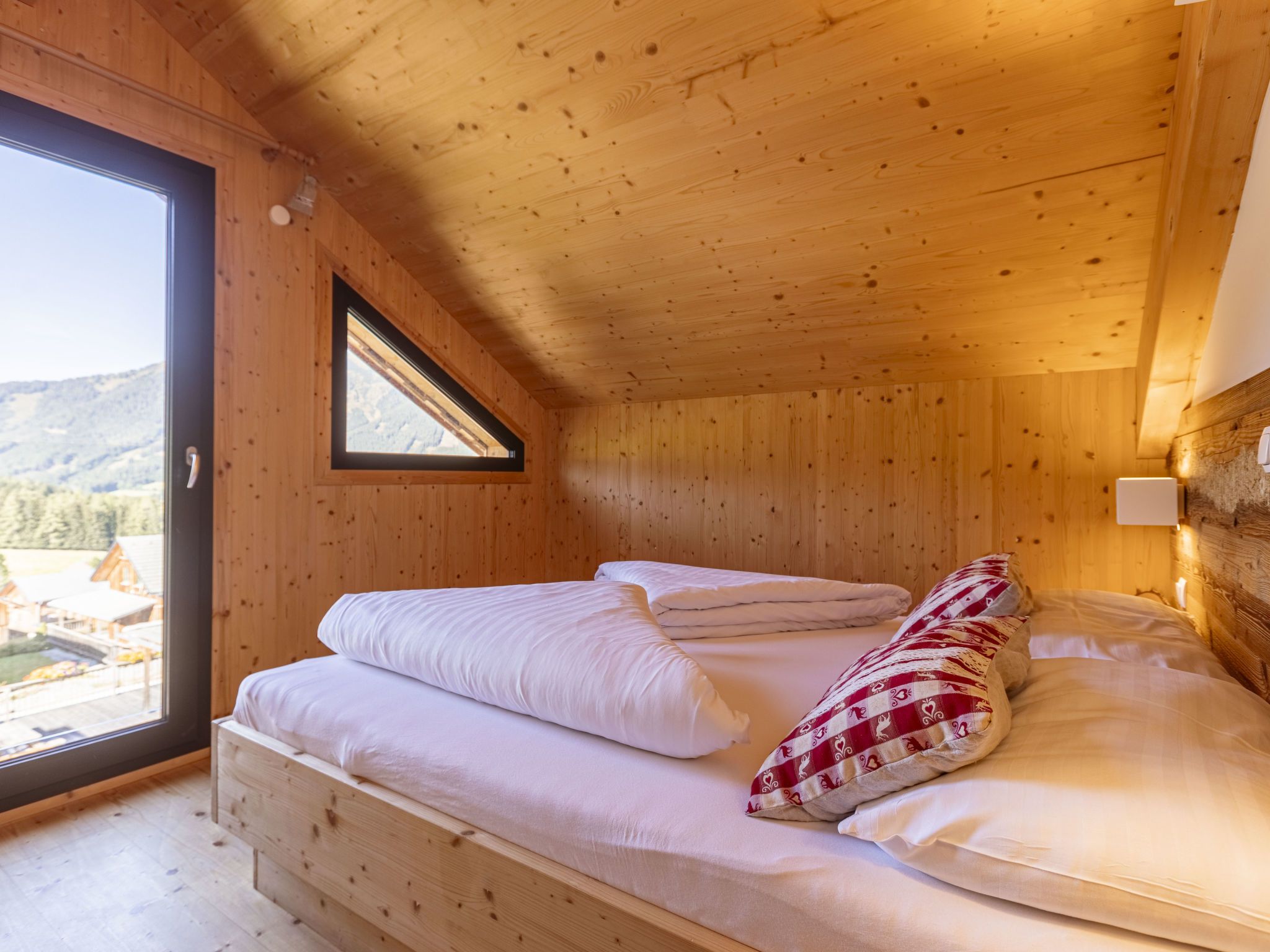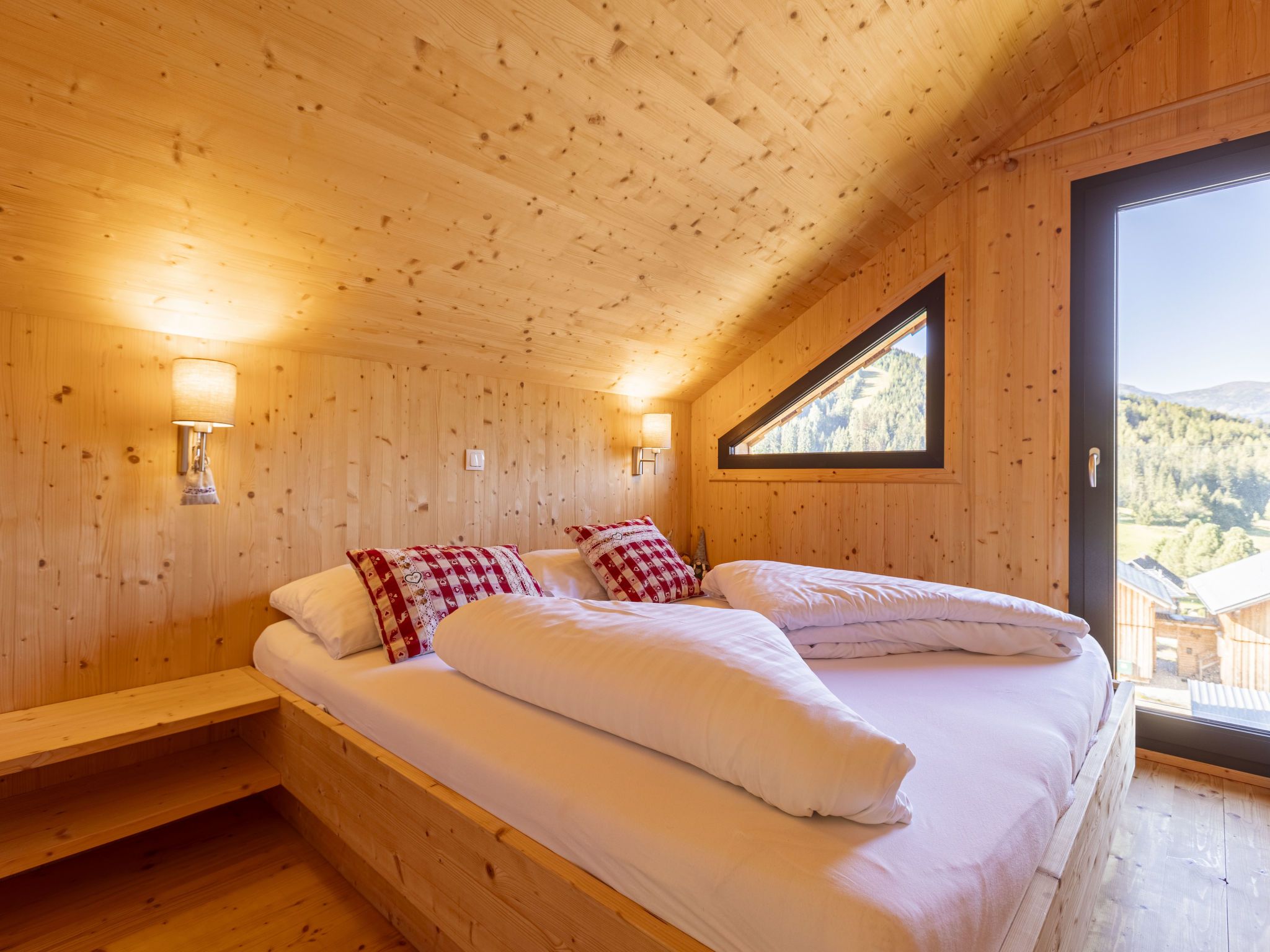 Superior 55 mit IR-Sauna, 5-Zimmer-Chalet 100 m2 auf 2 Stockwerken. Geräumig und hell, komfortabel und geschmackvoll eingerichtet: Eingang. Wohn-/Esszimmer mit Esstisch, Sat-TV, Flachbildschirm und G-Heizofen. 4 Doppelzimmer. Offene Küche (Backofen, Geschirrspüler, 4 Glaskeramikplatten, Mikrowelle, elektrische Kaffeemaschine). Bad/Dusche, Dusche/WC. Terrasse. Terrassenmöbel. Sehr schöne Sicht auf die Berge und die Landschaft. Zur Verfügung: Internet (Wireless LAN, gratis). Parkplatz beim Haus. Bitte beachten: Nichtraucher-Haus. Rauchmelder.