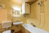 Bad: Badewanne mit Duschvorrichtung, Waschbecken und Toilette