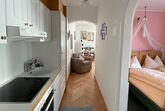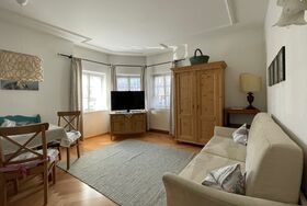 Beide Ferienwohnungen sind im ursprünglichen Stil erhalten und verfügen über lichtdurchflutete Wohnzimmer mit Sofa bzw. Doppel-Schlafcouch, Schlafzimmer und Marmorbad sowie voll ausgestatteter Kochzeile. Die original Kachelöfen wurden jeweils erhalten, sind nun zusätzlich elektrisch bedienbar und sorgen für ein besonders gemütliches Wohnklima. High Speed WLAN steht im ganzen Haus zur Verfügung, unsere TV Geräte sind NETFLIX, APPLE TV, AMAZON... etc. tauglich.