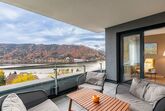 Burgblick alpe maritima Ski & See-Top 26, 3-Zimmer-Wohnung 75 m2 im 3. Stock. Hell, sehr modern und geschmackvoll eingerichtet: Eingang. Wohn-/Esszimmer mit Esstisch und Sat-TV (Flachbildschirm). Ausgang zur Loggia. 1 Doppelzimmer mit Sat-TV (Flachbildschirm). Ausgang zur Loggia. 1 Zimmer mit 1 Bett und Sat-TV (Flachbildschirm). Offene Küche (Backofen, Geschirrspüler, 4 Glaskeramikplatten, Toaster, Wasserkocher, Mikrowelle, Tiefkühler, elektrische Kaffeemaschine). Dusche/WC, sep. WC. Parkettboden. Grosser Balkon 10 m2. Balkonmöbel, Abstellkammer. Sehr schöne Panoramasicht auf den See und die Berge. Zur Verfügung: Waschmaschine, Safe, Fliegengitter, Haartrockner. Internet (WLAN, gratis). Parkplatz (überdacht, 1 Auto). E-Ladestation. Bitte beachten: Nichtraucher-Unterkunft. Rauchmelder.