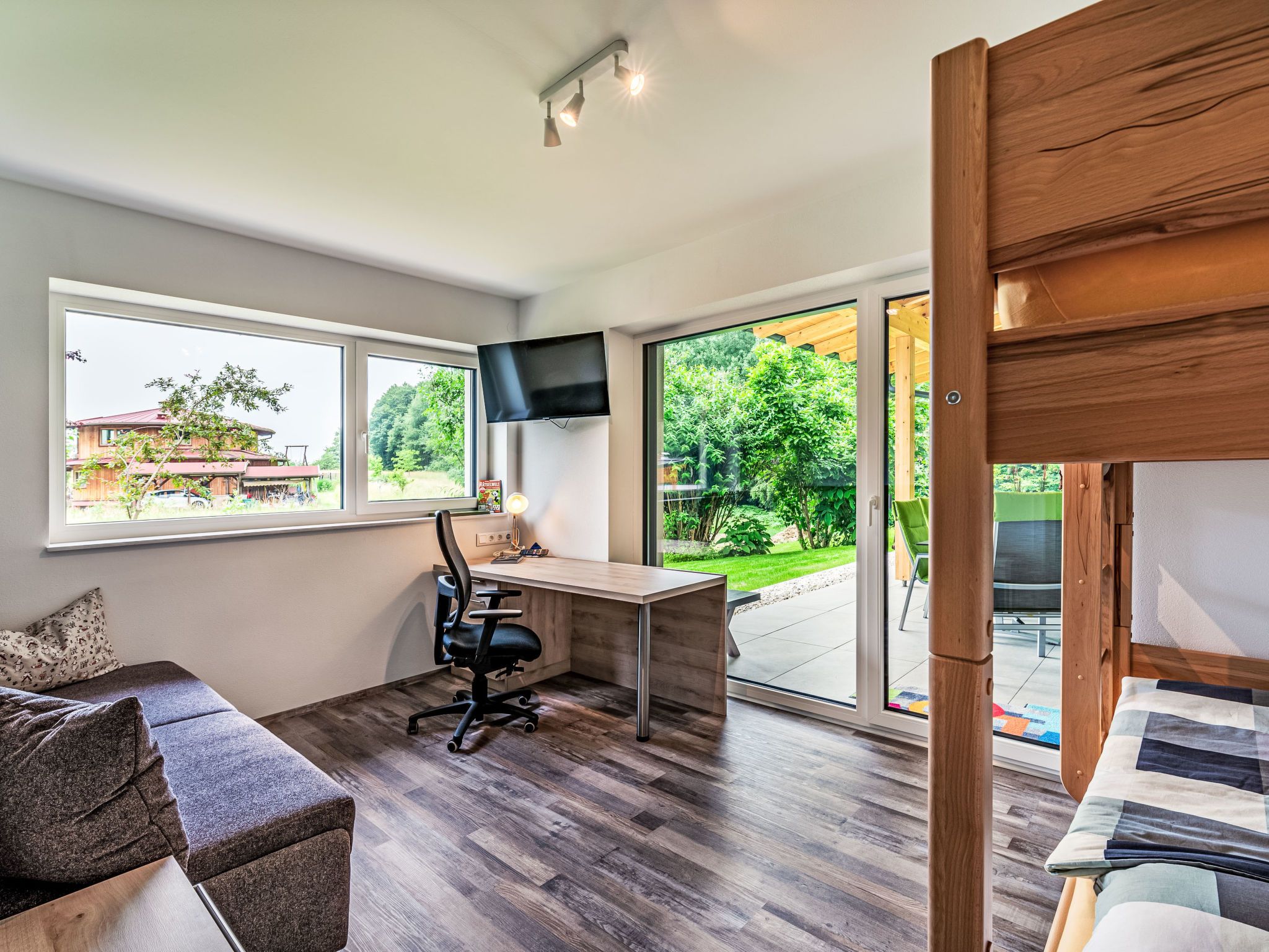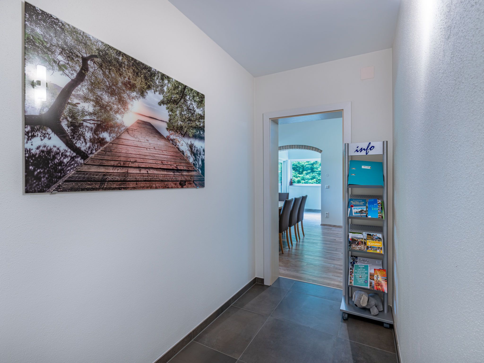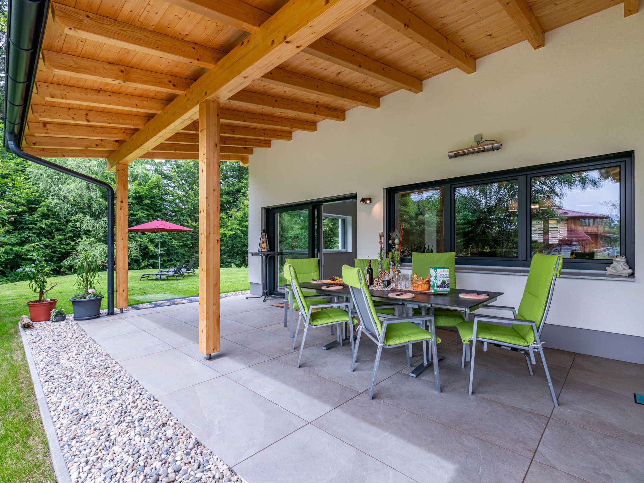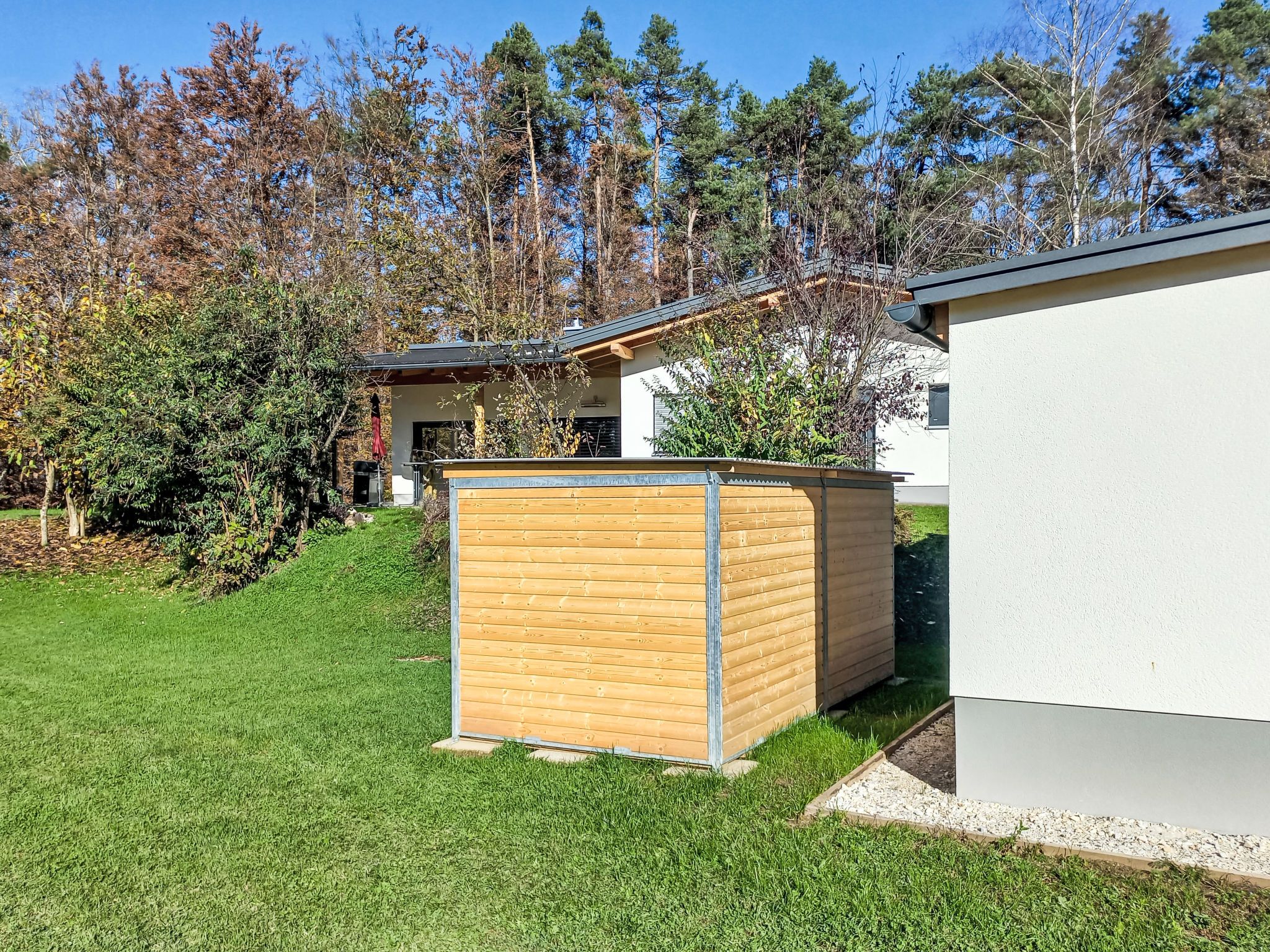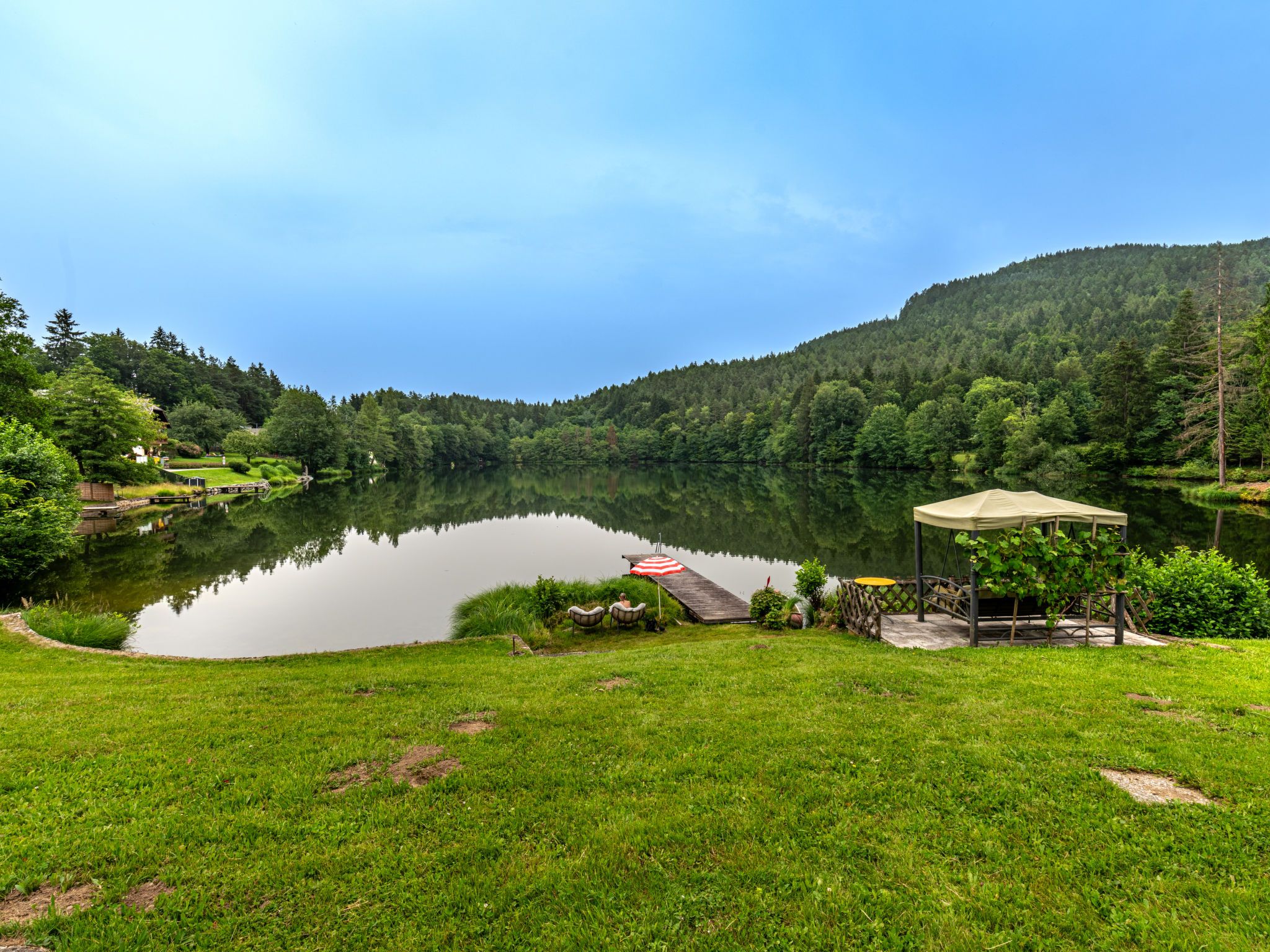 Schiefling am See 7 km von Velden am Wörthersee: Bungalow Sonnenteich-Haus, Baujahr 2023. Im Ortsteil Goritschach, am Ortsrand, 2.5 km vom Zentrum von Schiefling am See, ruhige, sonnige Lage, 10 m vom Waldrand, 4.5 km vom See, in einer Sackgasse. Zur Alleinbenutzung: Grundstück 2'000 m2, Garten. Gartenmöbel, Grill. Im Hause: Zentralheizung. Parkplatz (für 2 Autos, überdacht) beim Haus. Carport. E-Ladestation. Supermarkt 2.5 km, Restaurant 100 m, Bushaltestelle 2.5 km, Bahnstation Velden am Wörthersee 11 km, Naturbadeteich 100 m. Golfplatz (18 Loch) 6 km. Nahe gelegene Sehenswürdigkeiten: Pyramidenkogel 13 km, Minimundus 17 km. Bekannte Skigebiete sind gut erreichbar: Gerlitzen (Kanzelbahn) 26 km, Bad Kleinkirchheim 55 km. Bekannte Seen in der Umgebung sind gut erreichbar: Wörther See 5 km, Keutschacher See 7 km, Trattnigteich 100 m. Wandergebiete: Pyramidenkogel Wanderweg 13 km, Wörthersee Radrundweg 100 m. Hinweis: Haustierbesitzern steht vor Ort bei Bedarf kostenlos ein Hundezwinger zur Verfügung.