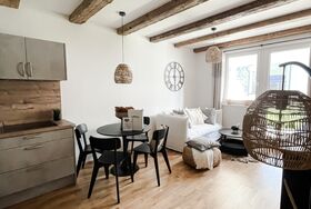 The modern ground-floor apartment accommodates up to six people. Two bedrooms, a fully equipped kitchen-diner, a stylish bathroom, a separate toilet, and a comfortable living area with a flat-screen TV ensure a relaxing vacation. The large terrace with mountain views invites you to linger. Wi-Fi and satellite TV are included. Summer Card is included!