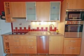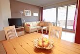 Das 47 m² große Apartment bietet alles für einen entspannten Aufenthalt: eine voll ausgestattete Küchenzeile, Essbereich, Wohnbereich mit ausziehbarem Schlafsofa, ein Schlafzimmer mit Doppelbett, ein modernes Badezimmer und eine Terrasse zum Entspannen. Ideal für bis zu 4 Personen.