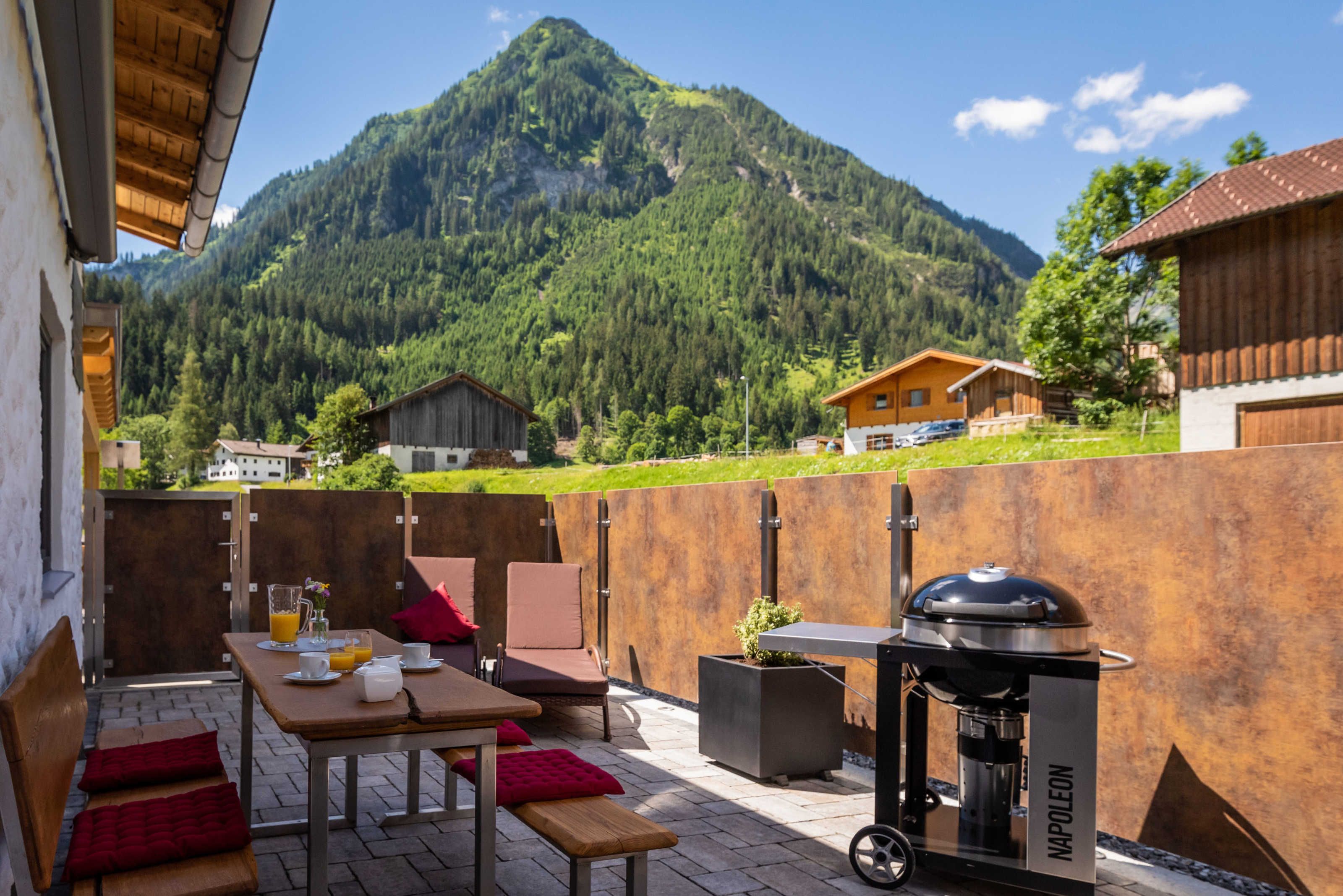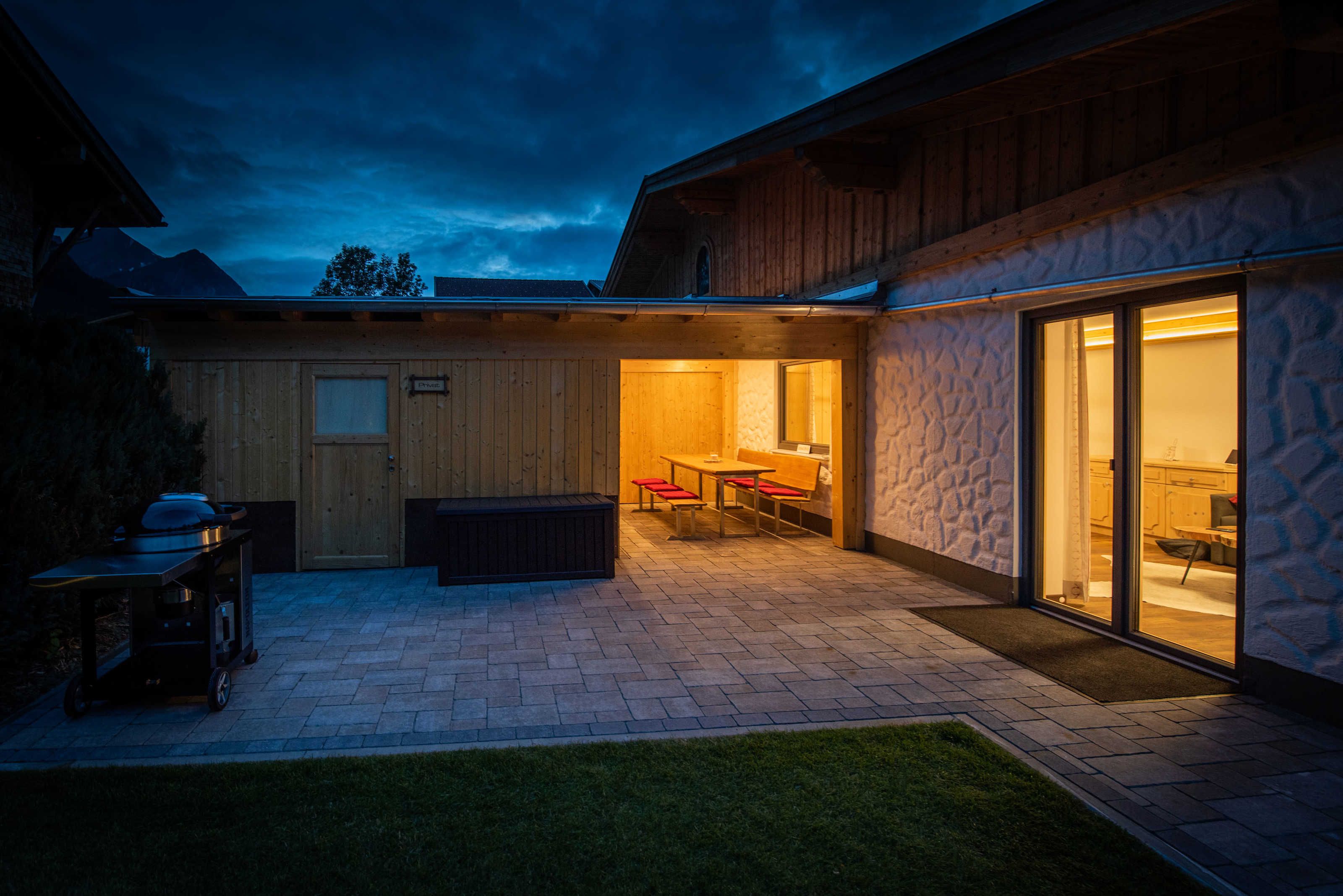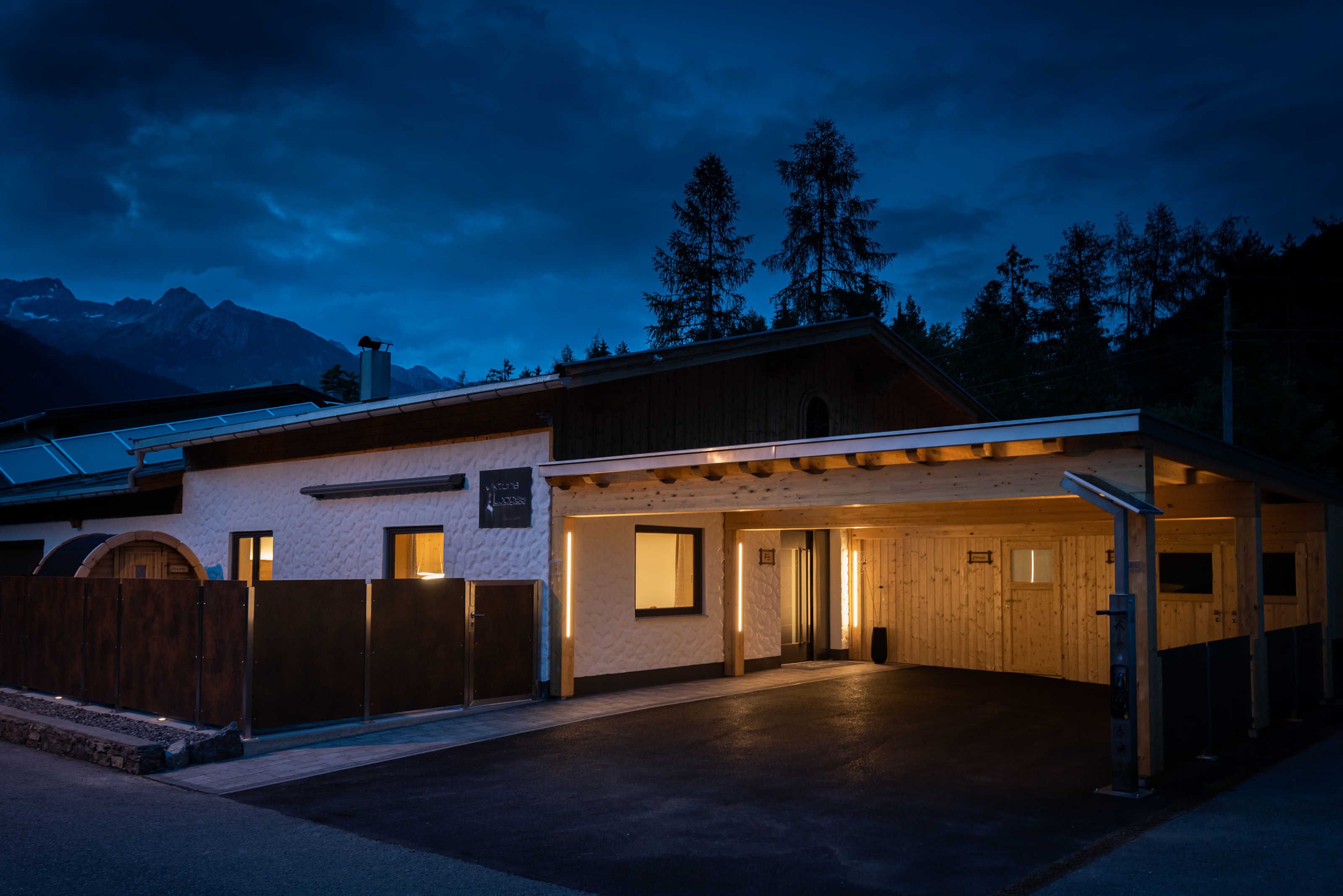 Großzügig (71m²) und mit viel Platz für Ihre Privatsphäre strahlt die Garten Lodge Ihre exklusive Ferienwohnung im Lechtal mit eigenem Garten. 2 Schlafzimmer mit TV und ein großes Ecksofa laden zum Entspannen ein. Der eigene Garten mit viel Grün, einer Faßsauna mit faszinierendem Blick auf den Alperschonerbach sowie eine überdachte Laube für gemütliche Grillabende bieten ein Maximum an Komfort und Urlaubsfeeling.