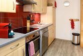 gut ausgestattete Küche mit Spülmaschine, Keramik Kochfeld mit Ofen, Mikrowelle, Kühlschrank mit Gefrierfach, Kaffeemaschine, Nespresso und Wasserkocher