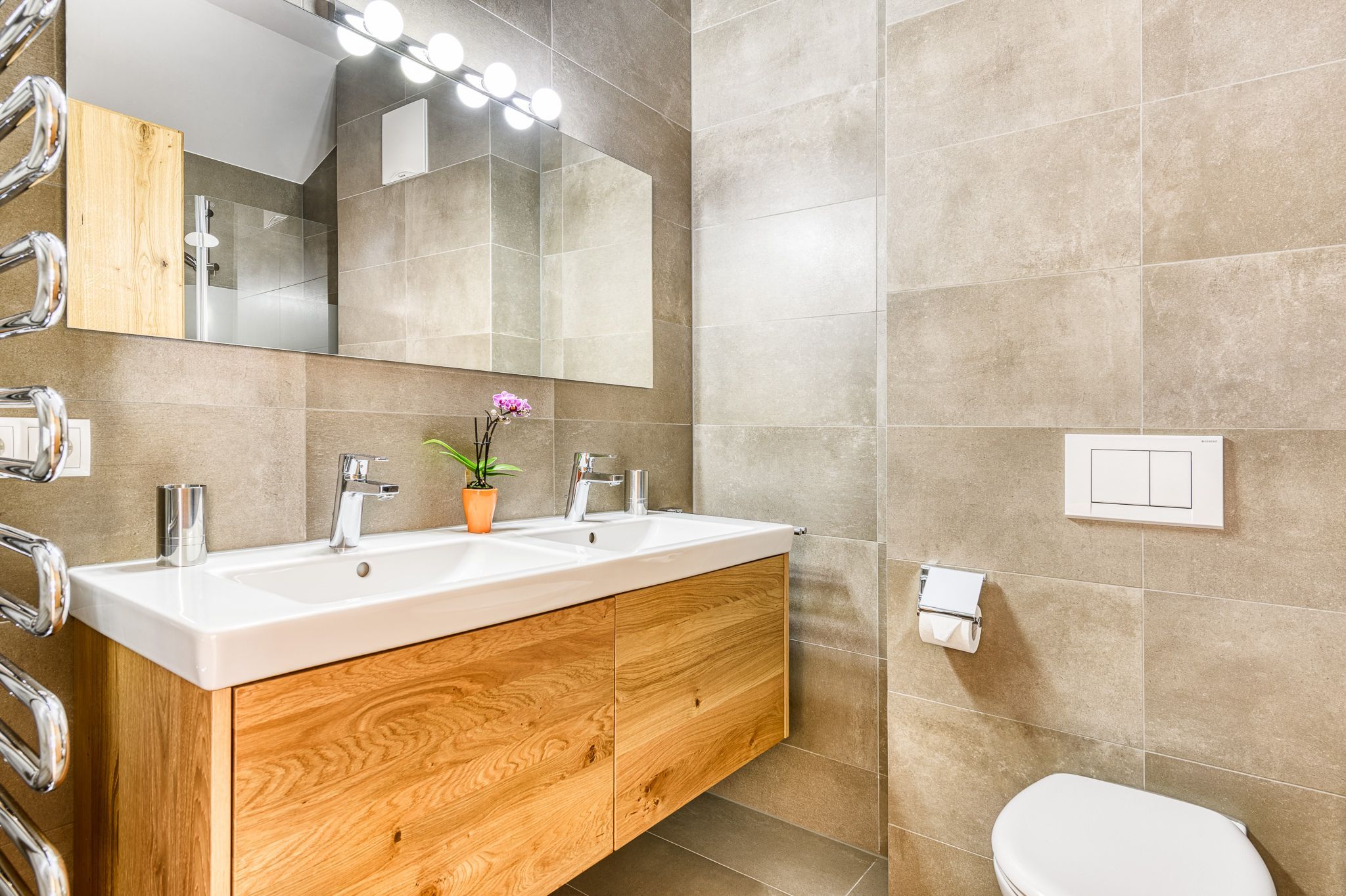 -2 Badezimmer (1 mit Badewanne und Dusche, 1 mit begehbarer Dusche).