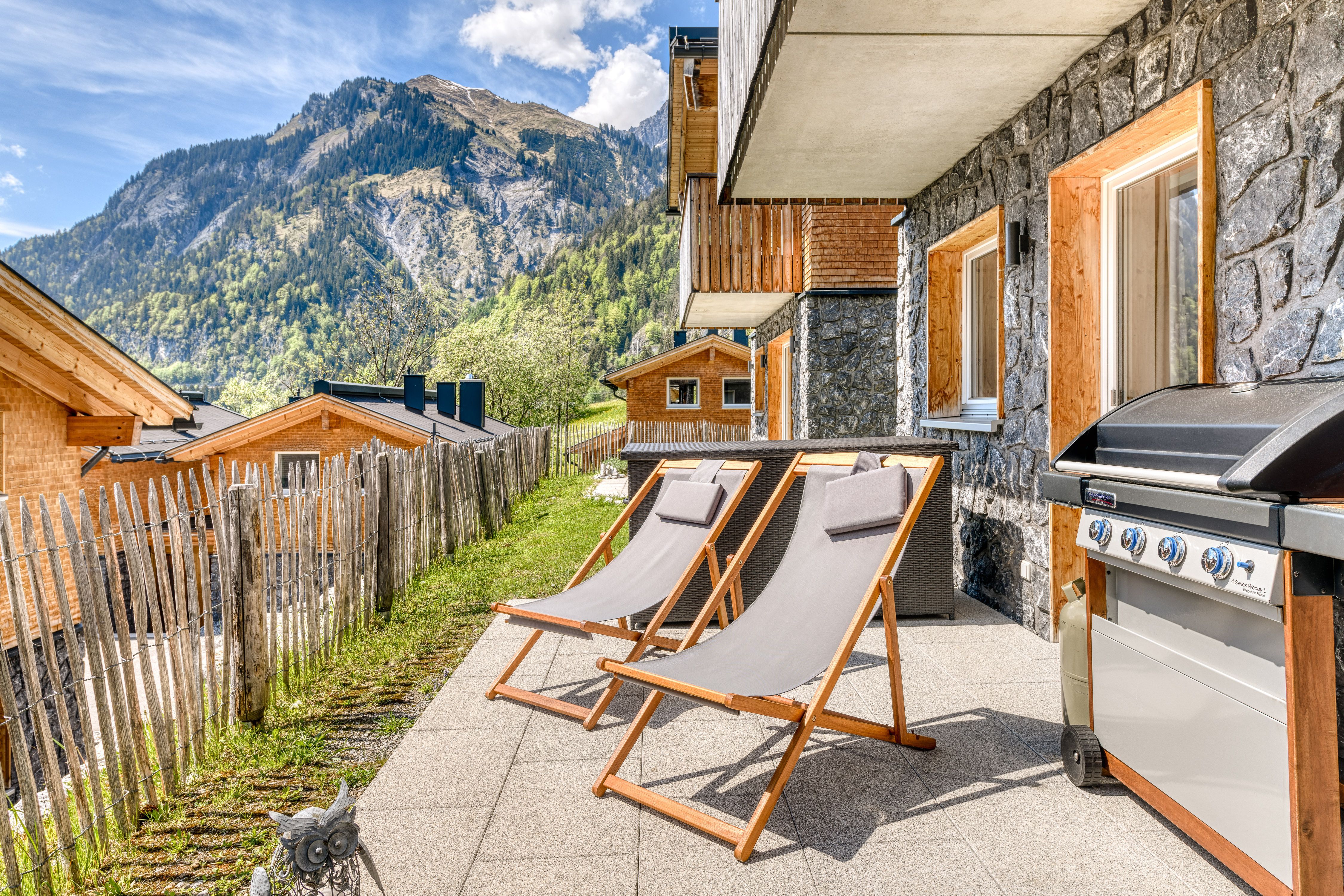 - Ausblick auf traumhaft schöne Alpenwiesen und Berggipfel vom Schlafzimmer und Terrasse.
