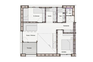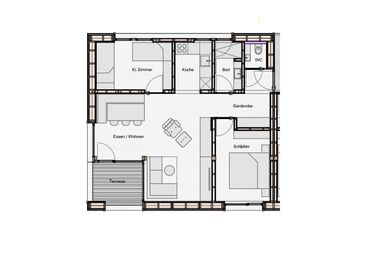 Diese gemütliche Wohnung (ca. 65m²) hat eine voll ausgestattete Wohnküche und 2 Schlafzimmer.