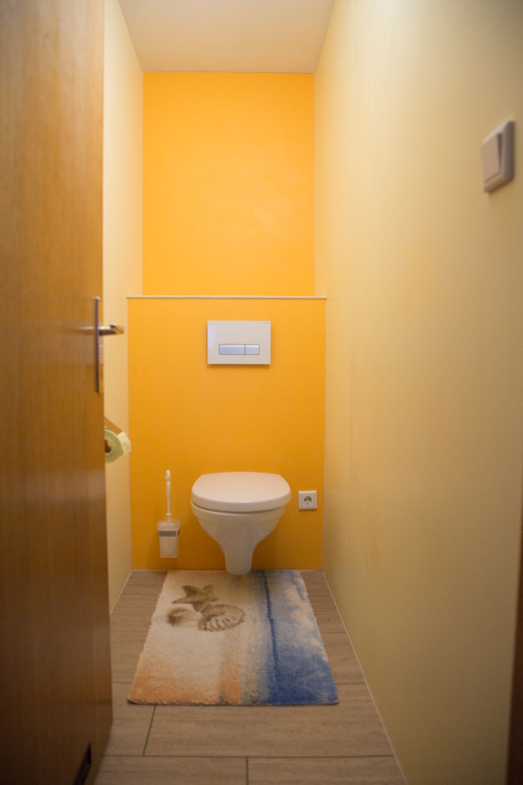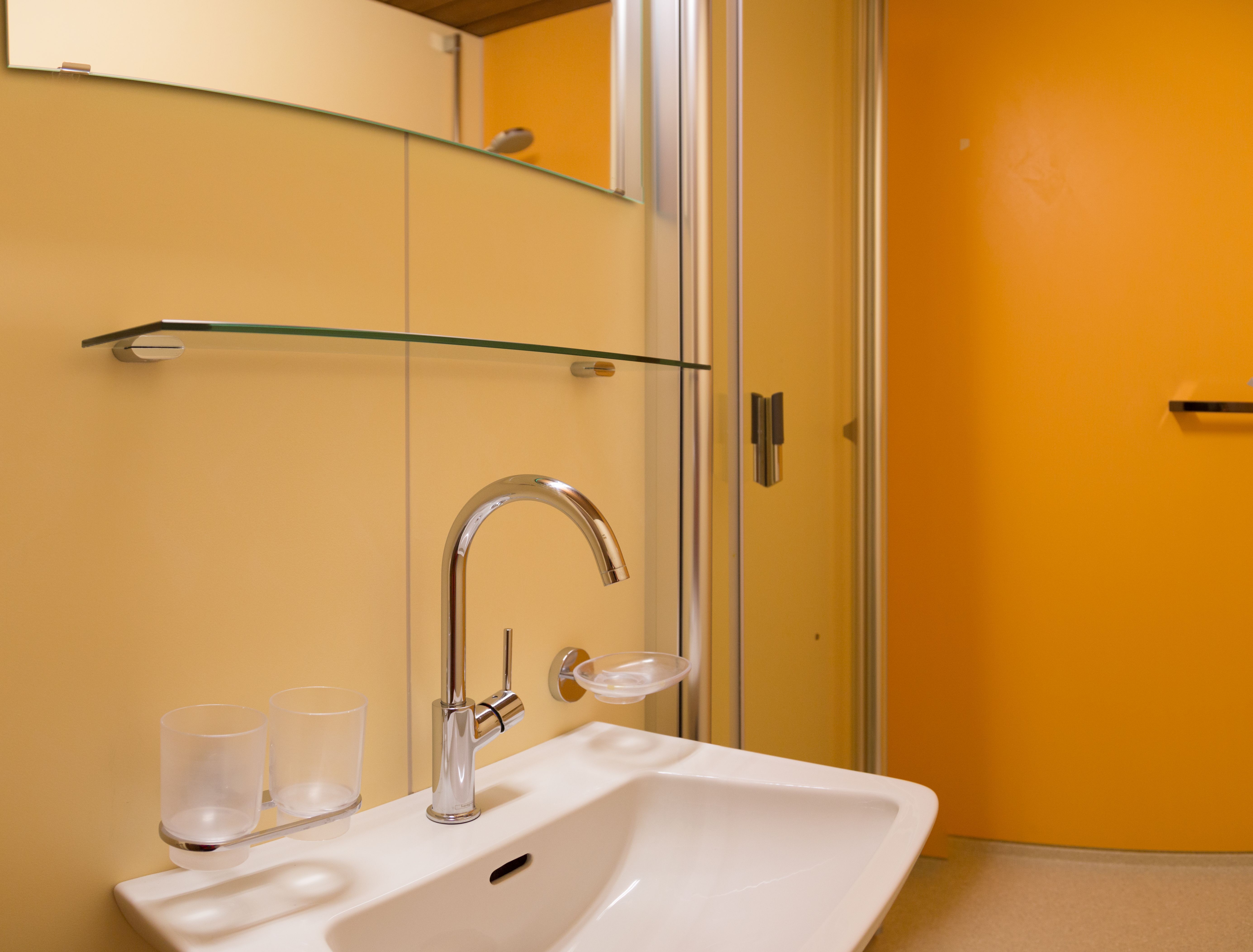 WC und Dusche sind räumlich getrennt. In den Schlafzimmern ist je ein Waschbecken vorhanden.