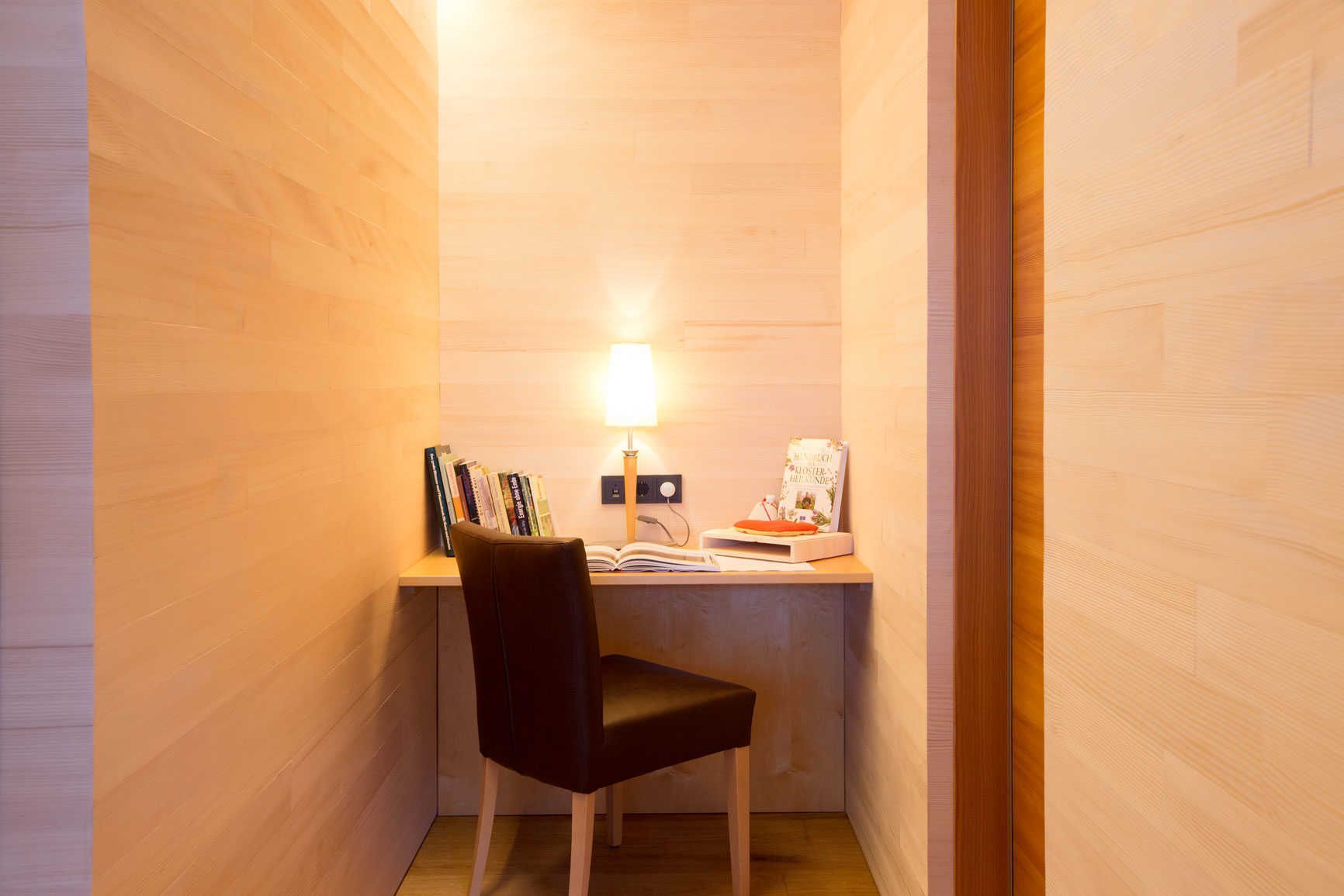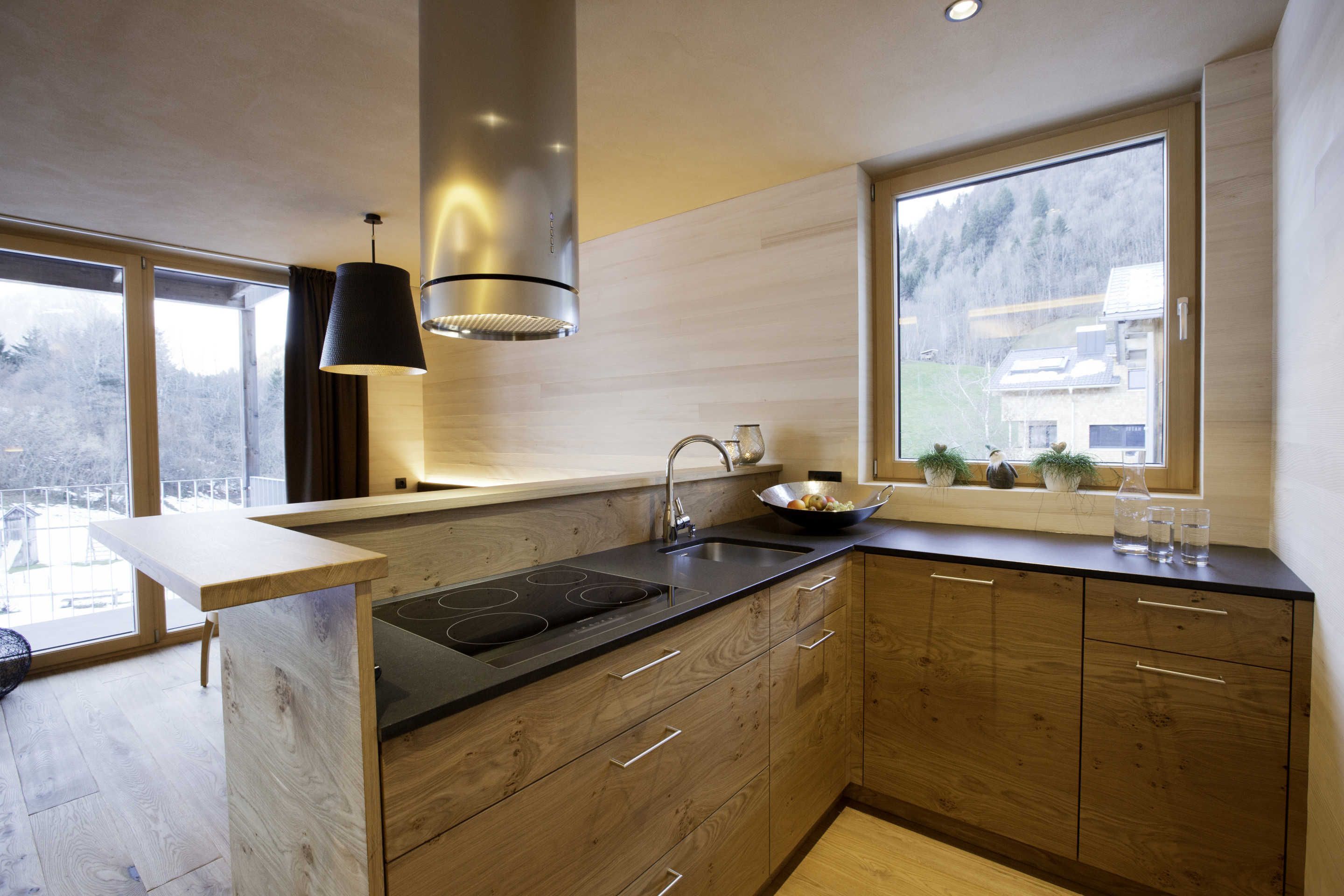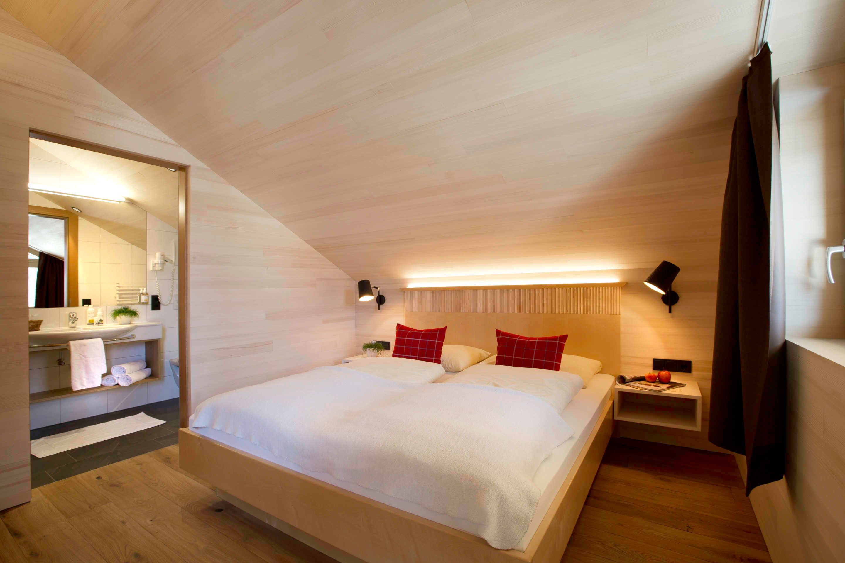 Alle Apartments sind mit hochwertigen Holzböden (Eiche Parkett), Wandvertäfelungen aus heimischer Weißtanne, Decken aus heimischer Weißtanne und Lehmputz ausgestattet.