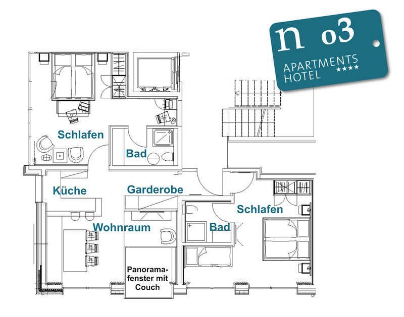 • Apartment 1 ist zusätzlich ausgestattet mit einer eigenen Sauna