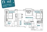 • Apartment 1 ist zusätzlich ausgestattet mit einer eigenen Sauna