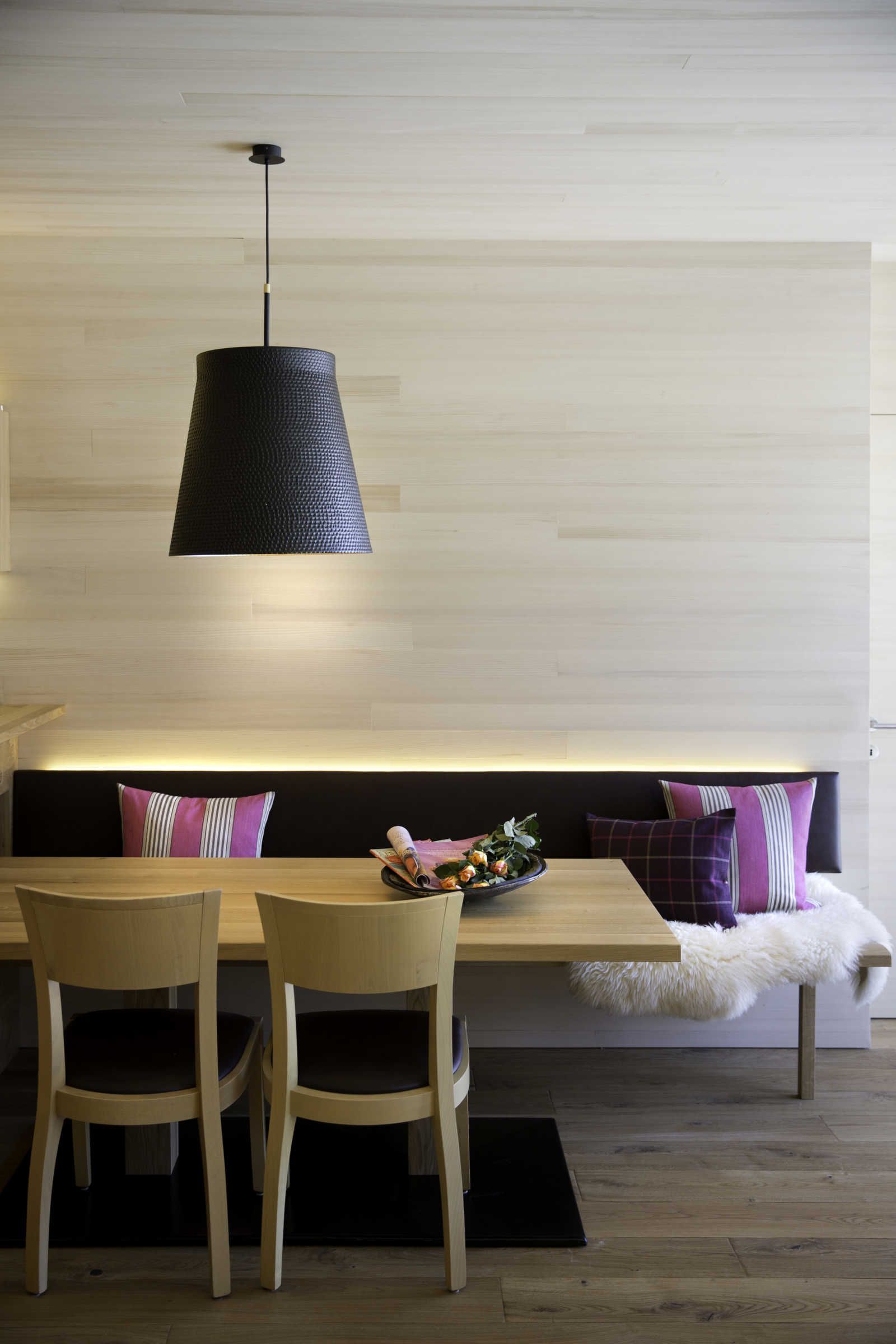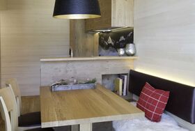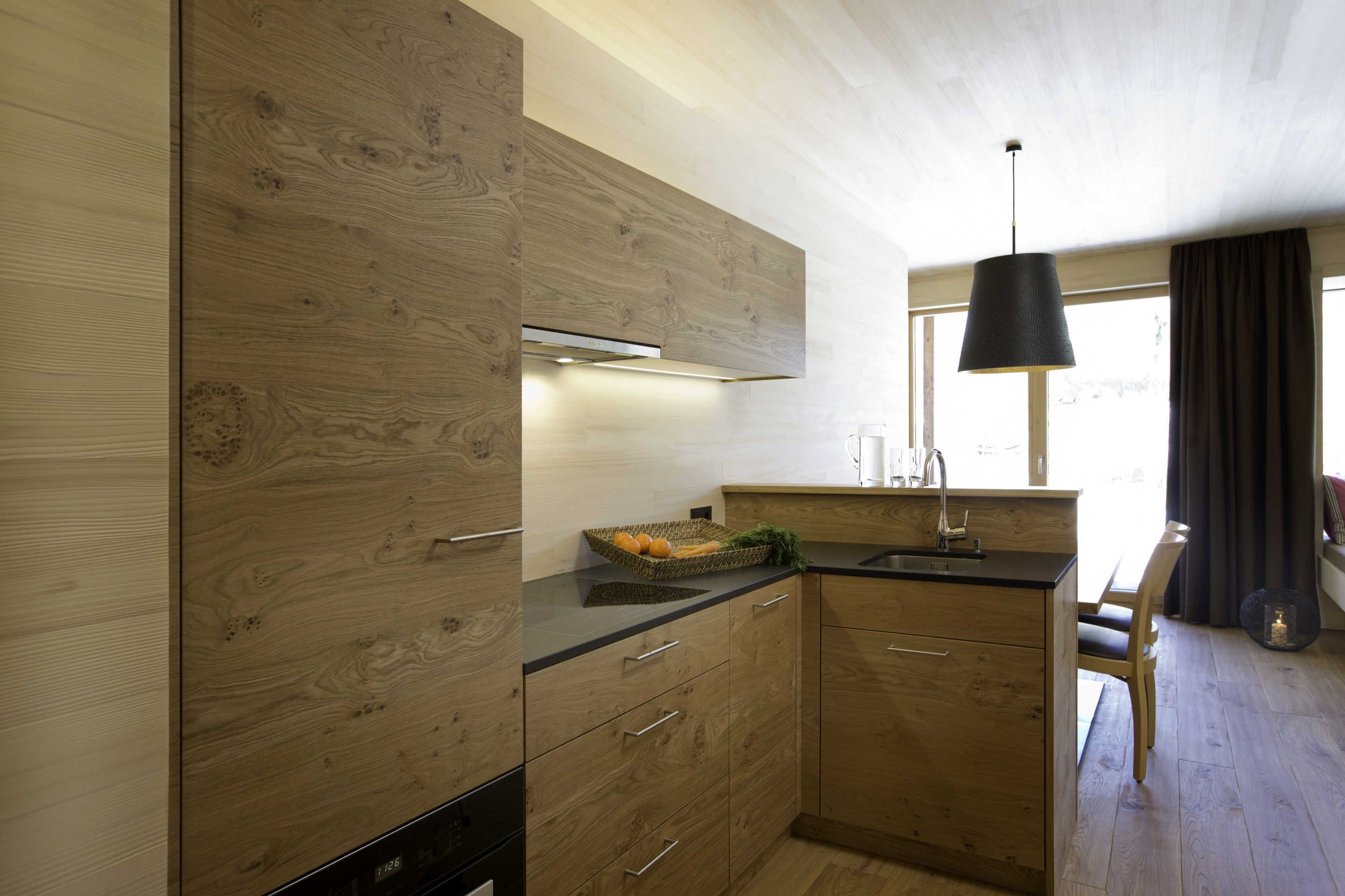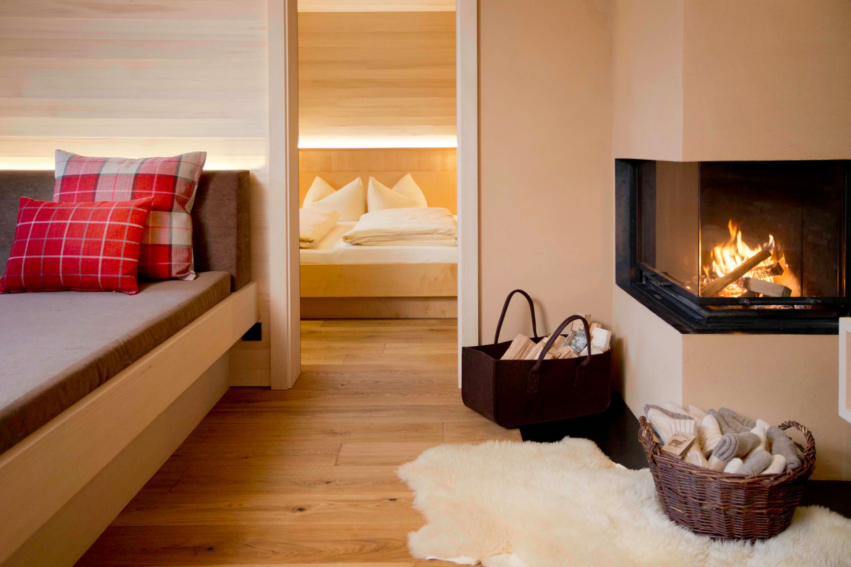 Alle Apartments sind mit hochwertigen Holzböden (Eiche Parkett), Wandvertäfelungen aus heimischer Weißtanne, Decken aus heimischer Weißtanne und Lehmputz ausgestattet.