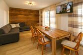 Schöne, neue Wohnung mit Balkon, Badezimmer (Waschbecken, Dusche, WC, Fön, Handtuchheizung), Schlafzimmer mit Sitzgelegenheit, Wohnzimmer mit Küchenzeile und Essgelegenheit, Sitzecke mit Sat-TV & Radio, Safe, Telefon und WLAN