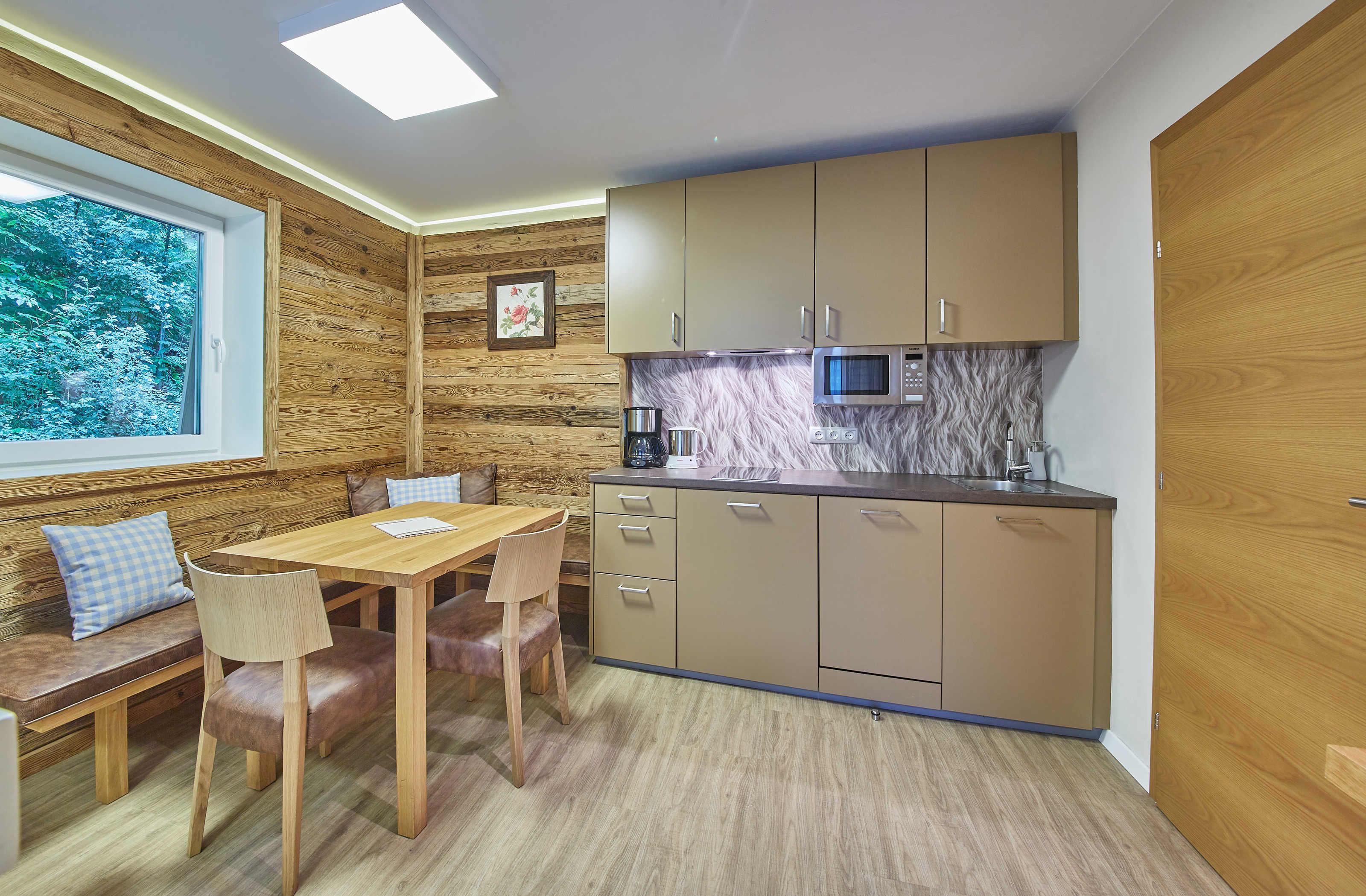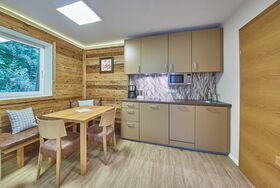 Trendiges Appartement im Alpin-Stil mit 1 Schlafzimmer mit hochwertiger Bettenqualität, 1 Wohnschlafraum mit ausziehbarer Couch, Badezimmer mit Dusche/WC oder teilweise separatem WC, Balkon