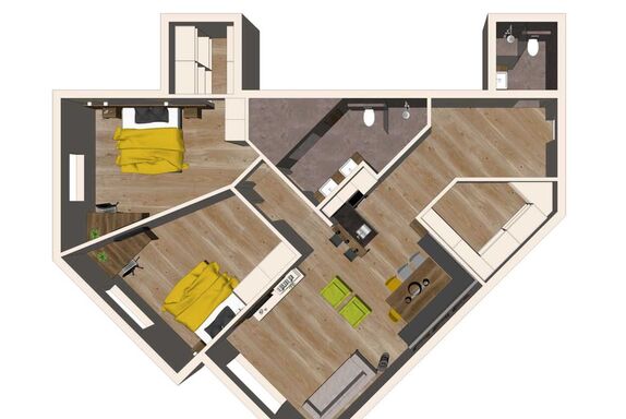Mit 2 Schlafzimmern und superflauschigen Boxspringbetten bietet die Wohnung genügend Platz für 4 Personen. Das technische Equipment in der Küche reicht von einer Nespresso Kaffeemaschine und einem Wasserkocher, über Kühlschrank mit Gefrierfach, bis hin zu High-Tech Ceranherd. Wohn-/Aufenthaltsraum, Safe, Suite-Pads, Wi-Fi, Flat- TV, Schlafcouch für 2 Personen, Badezimmer mit Dusche/WC, 1 separate Dusche und WC, Schrankraum und Terrasse.