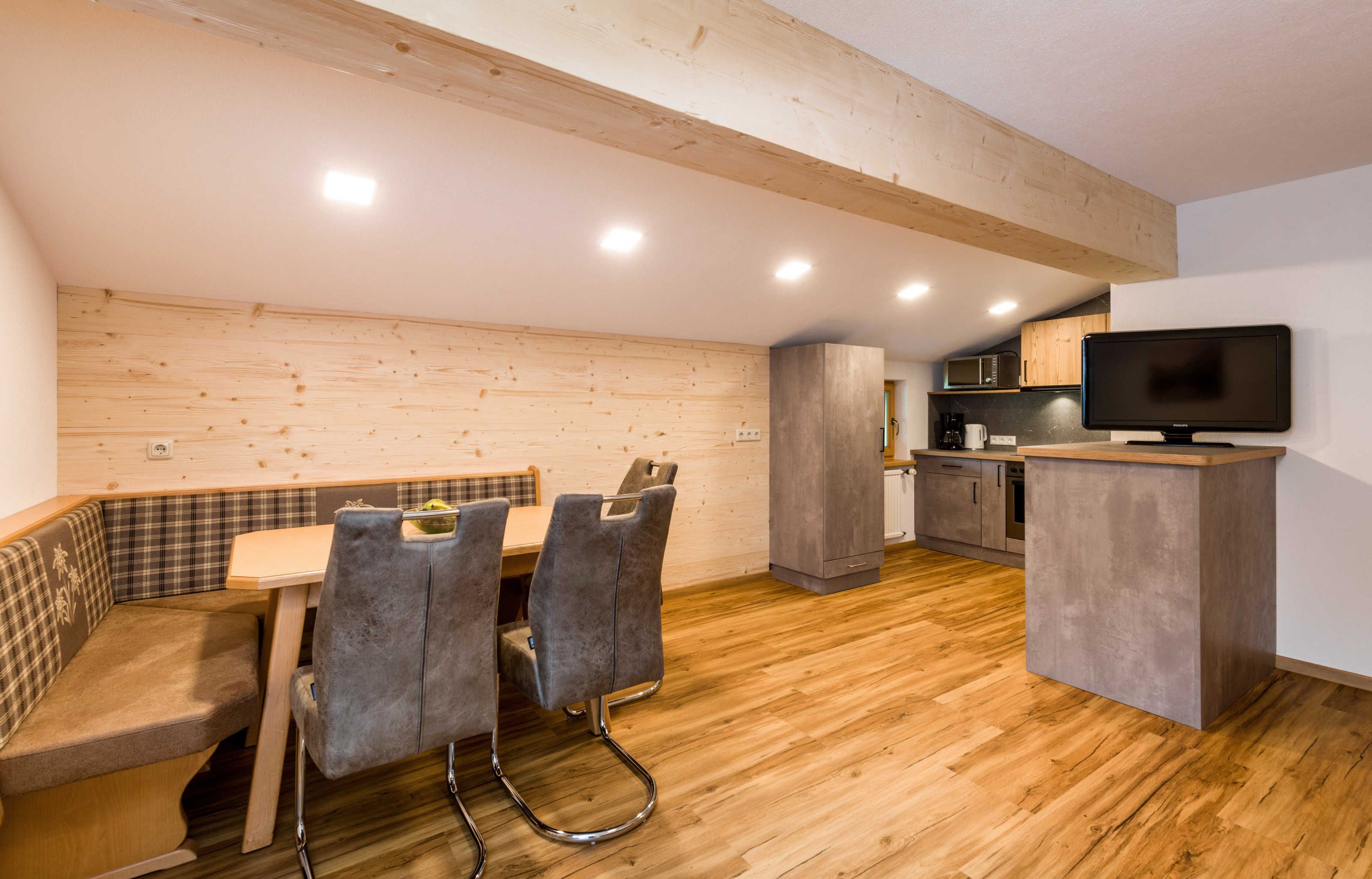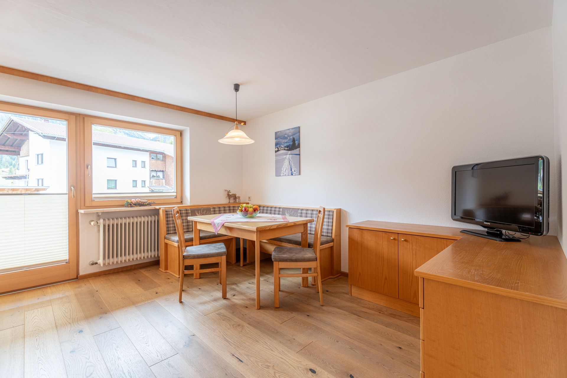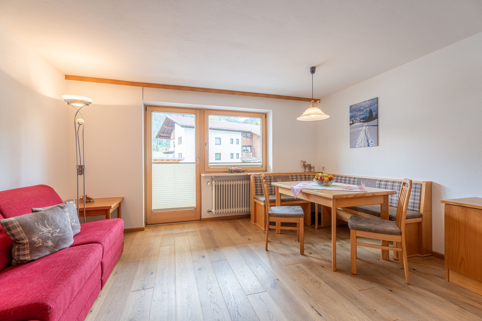 Appartement Lärche liegt südseitig im 1. OG und bietet auf ca. 48 m² genügend Platz um sich mit 2, 3 oder 4 Personen zu erholen. Eignet sich hervorragend für Familien, Gruppen aus 2 Paaren, da Bad und WC von beiden Schlaf - bzw. Wohnschlafzimmern zugänglich sind. Modern und komfortabel eingerichtet.
