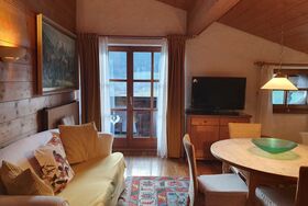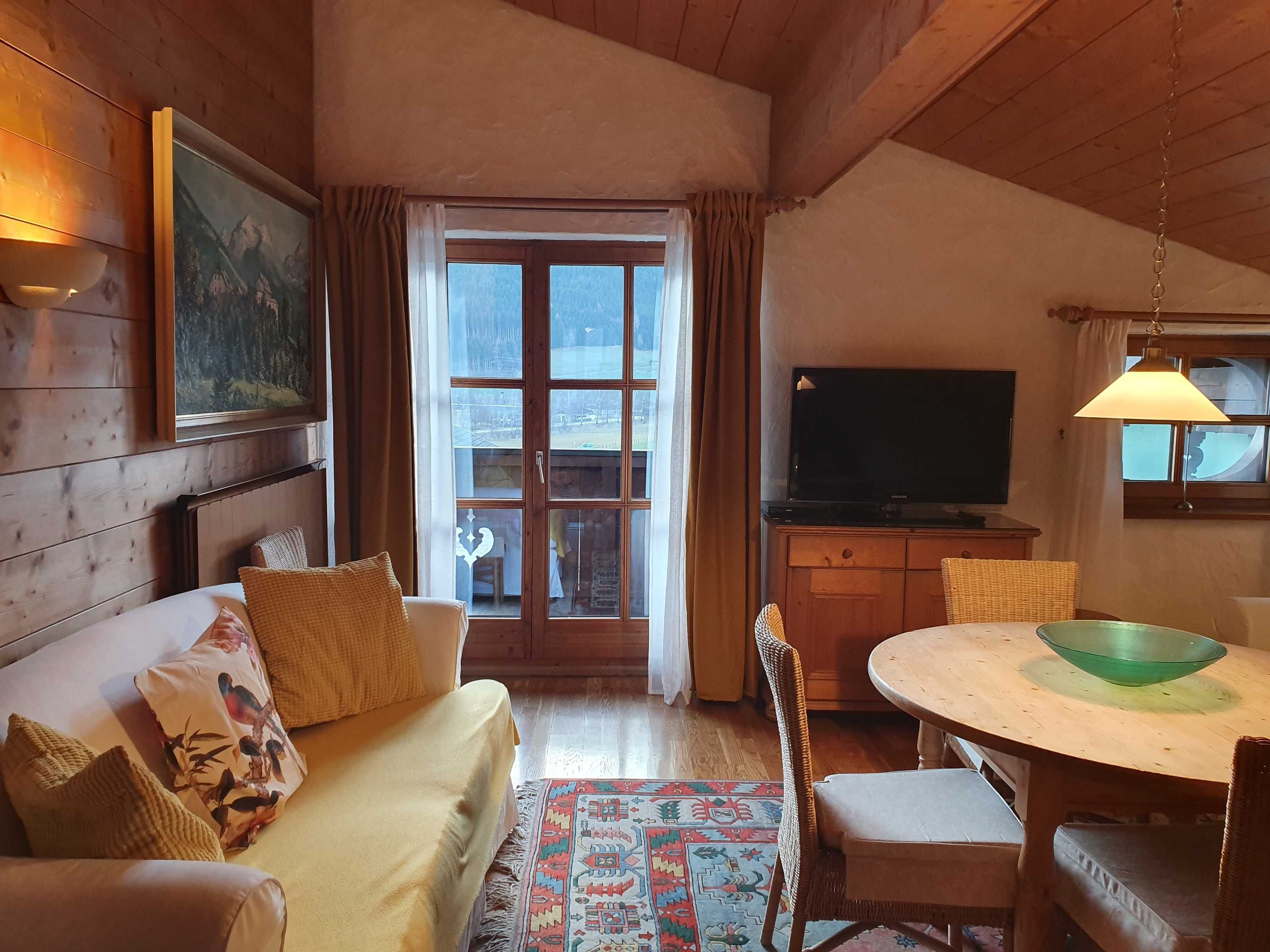 Appartement 2.Stock 56 Quadratmeter / Blick auf unsere schöne Bergwelt und See/Balkonmöbel Doppelbettzimmer ( grosses Bett) Vorraum mit Küchenblock (komplett ausgestattet mit Geschirr Kafeemaschine Wasserkocher E-Herd ( 4 Platten)Ceranfeld Backrohr / GESCHIRRSPÜLER sehr grosses Wohnzimmer mit offenem Giebel / Wohnzimmergarnitur/ grosser Esstisch fest stehendes Bett / Aufbewahrung -grosse Schränke / TV Gerät Flachbild gross WLAN/ Holzparkettböden mit Perserteppich belegt!