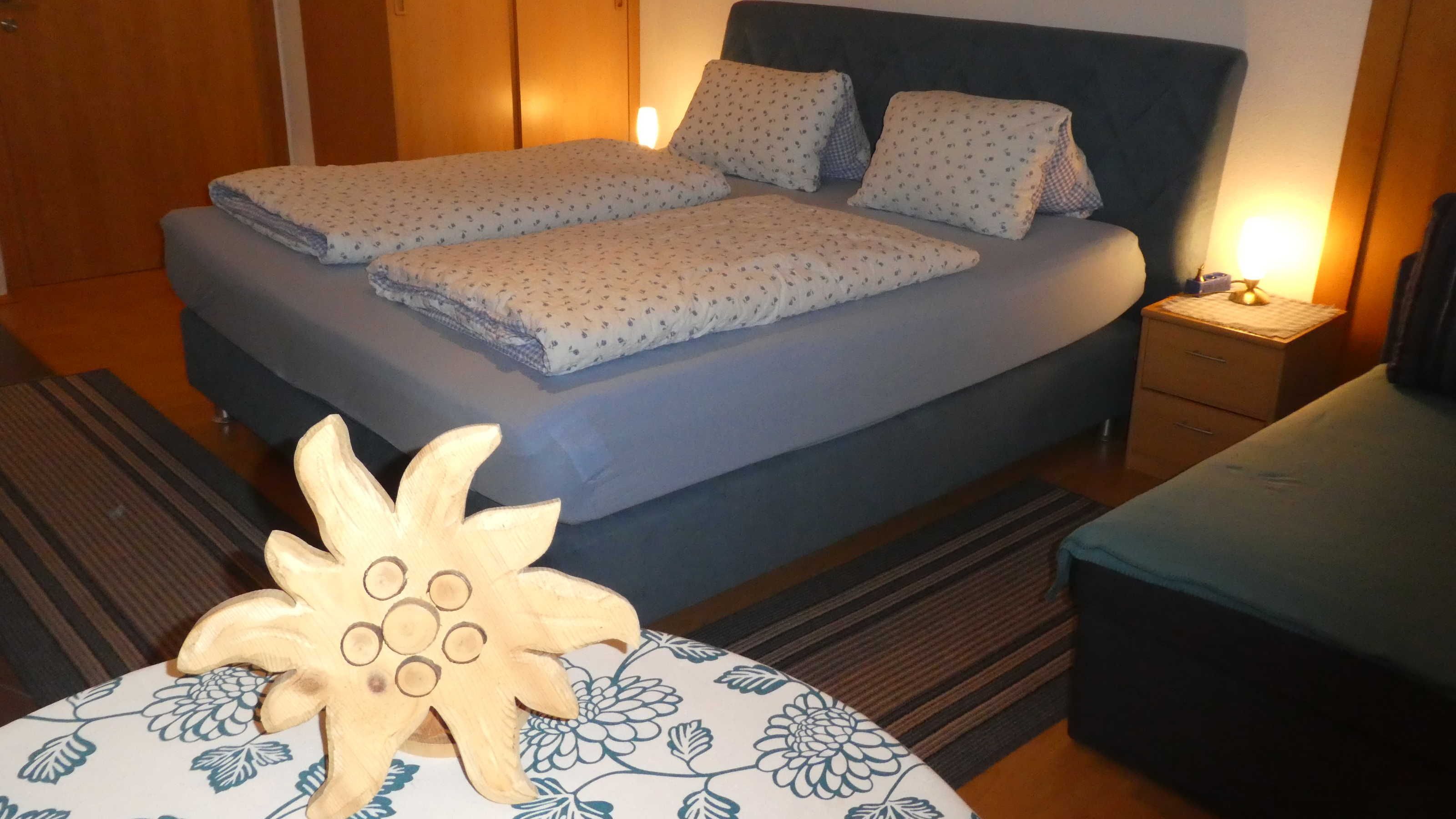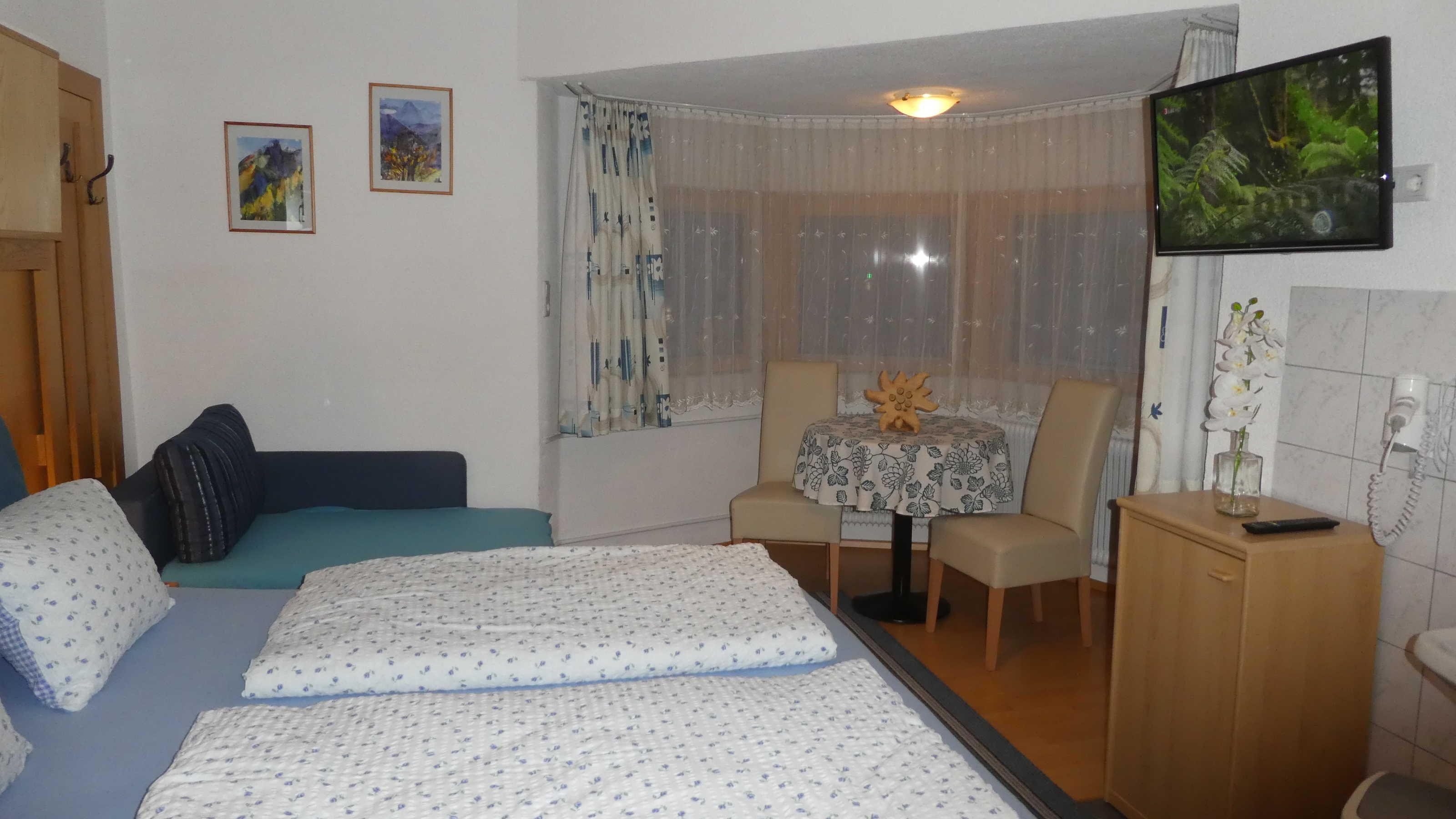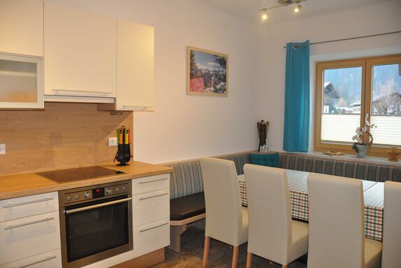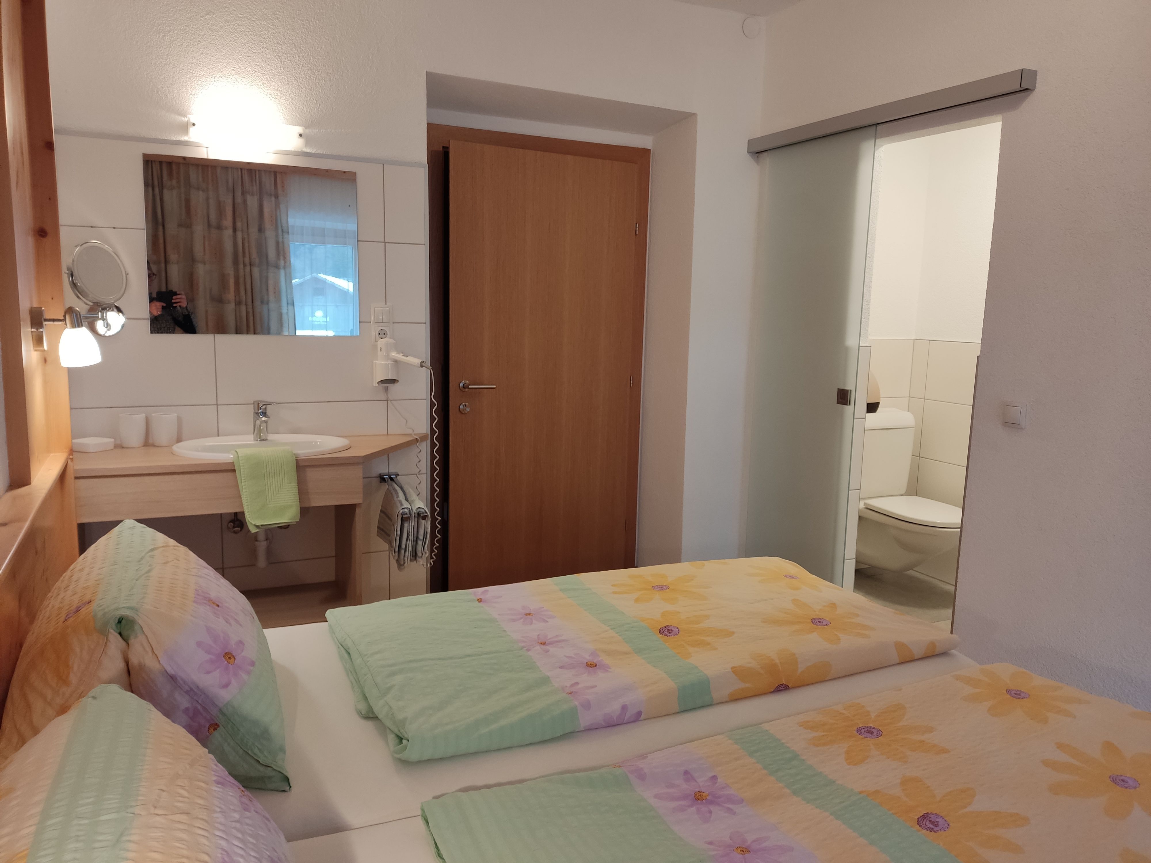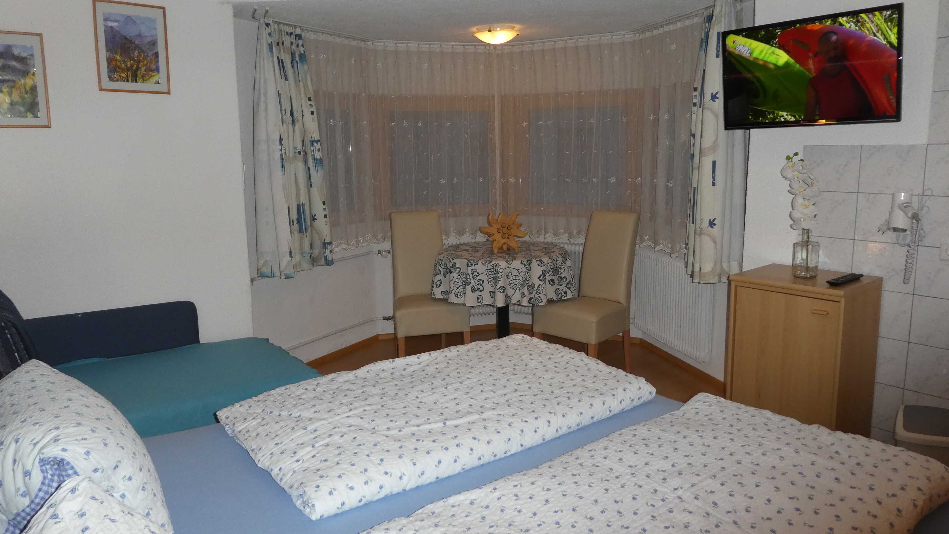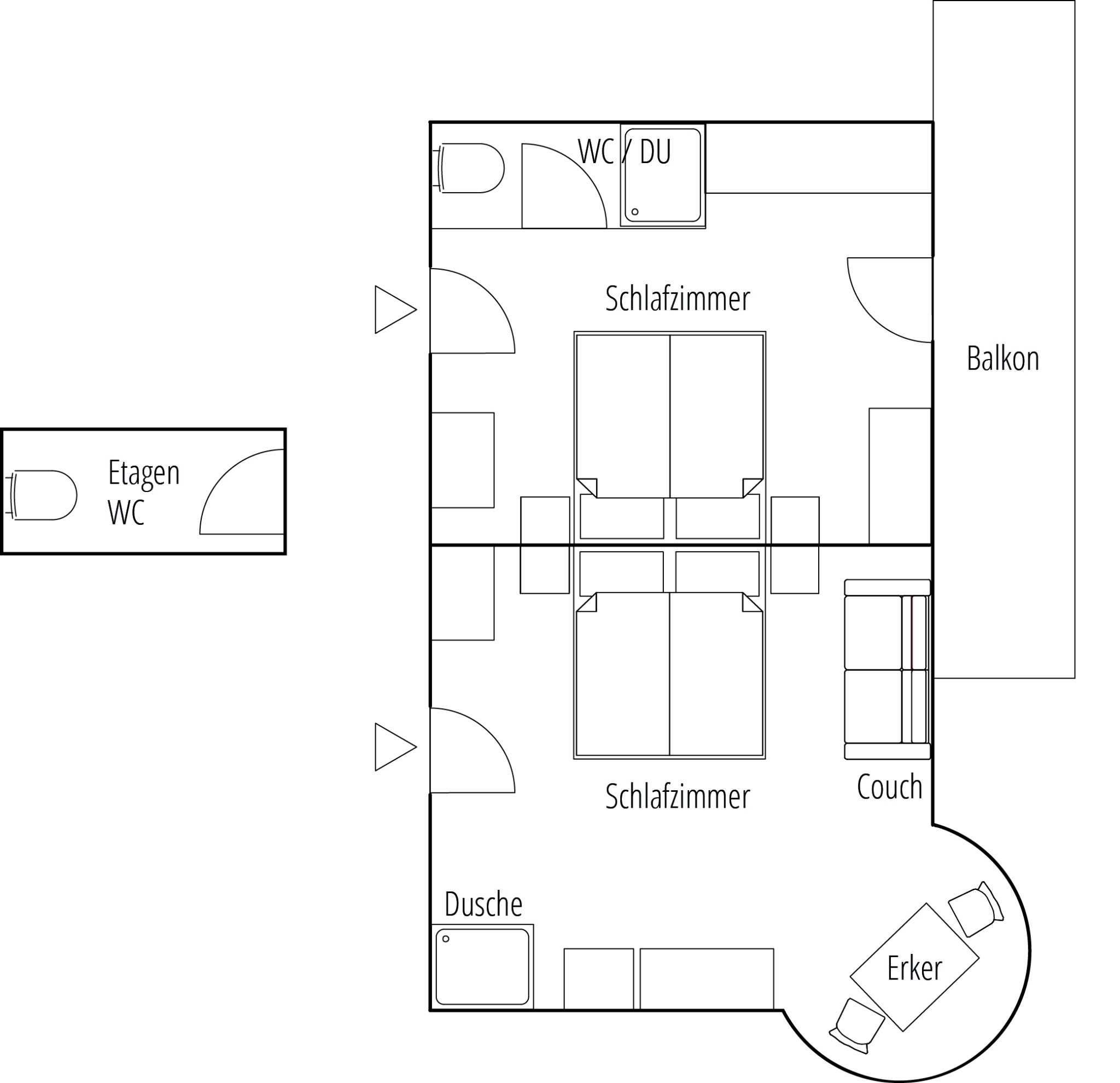 Große neue Wohnküche mit gemütlicher Sitz-Essecke und Flat-SAT-TV im Parterre sowie separat dazu im ersten Stock 1 Doppelzimmer mit Dusche/WC, Flat-SAT-TV und Balkon und 1 Dreibettzimmer mit eigener Dusche und Erker, Flat-SAT-TV, WC getrennt . Die Schlafzimmer sind direkt nebeneinander doch die Wohnung ist nicht abgeschlossen.