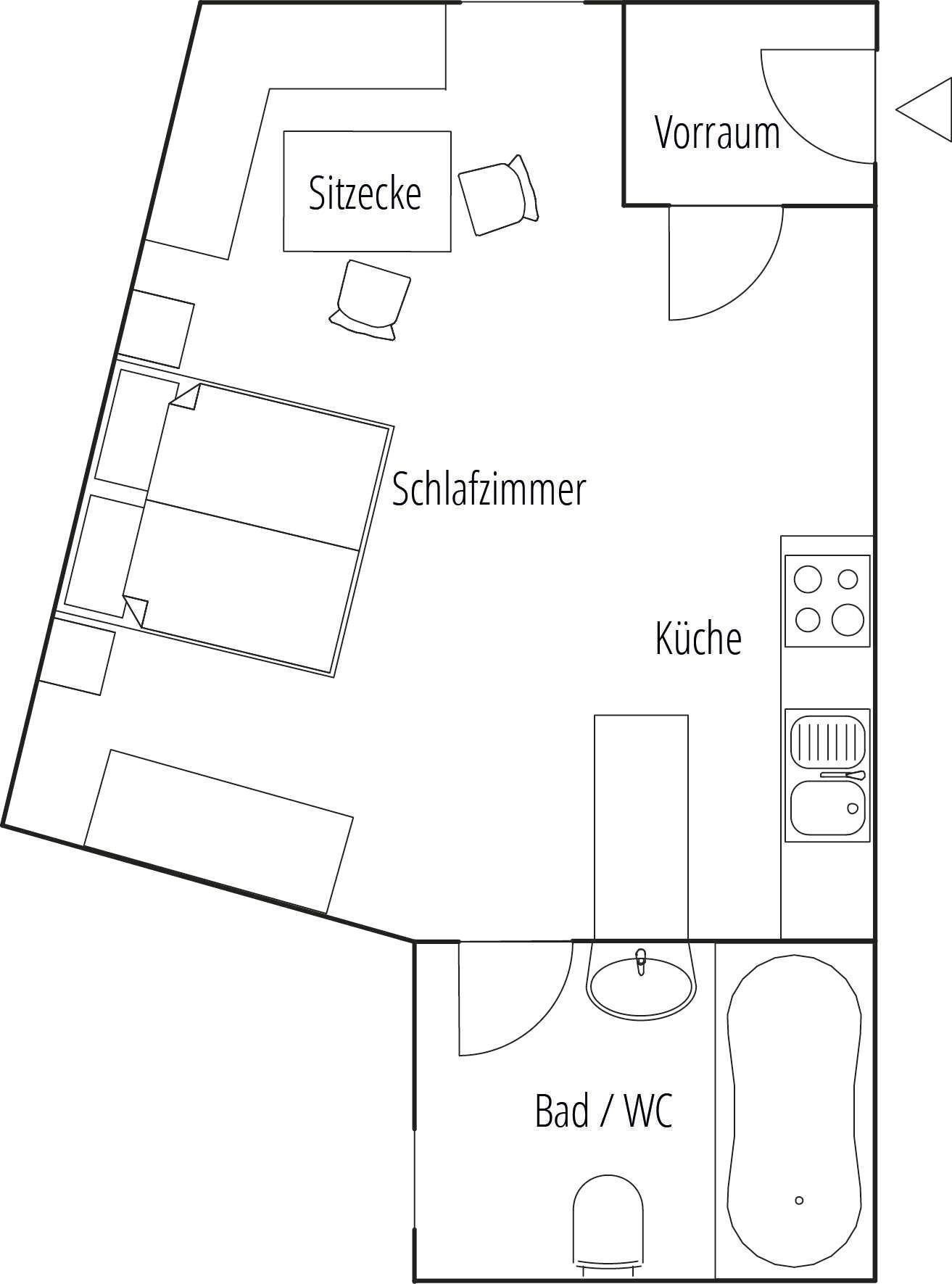 • Wohn/Schlafraum kombi.