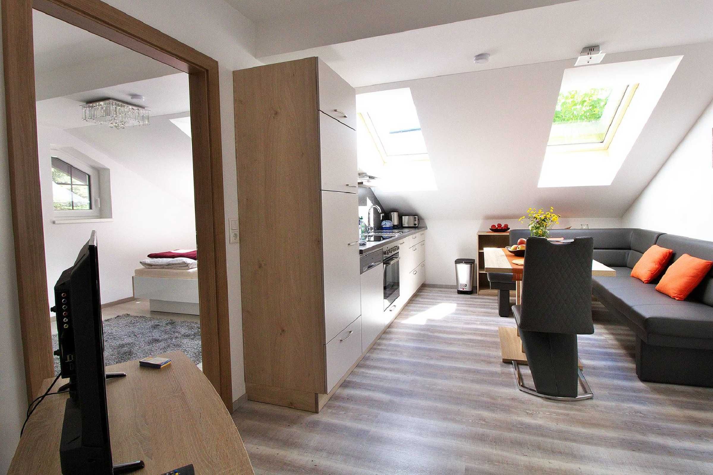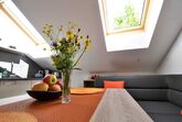 Das Apartment ist 63m² groß und befindet sich im 1. Stock über dem Haupthaus und bietet Platz für 1-4 Personen. und ist mit einer Außenstiege durch einen eigenen Eingang zu erreichen. Die Wohnküche ist komplett eingerichtet und mit einem Ceranofen, Kühlschrank und Gefrierfach ausgestattet. Eine gemütliche Sitzecke und ein Fernseher laden zum Wohlfühlen und entspannen ein. Alle Zimmer und Nebenräume sind mit einer Fußbodenheizung ausgestattet. Bettwäsche, Bade- , Hand- und Geschirrtücher sind im Preis inkludiert.