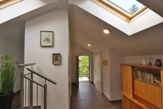 Das Apartment ist 70m² groß und befindet sich im 1. Stock über dem Erdgeschoß und bietet Platz für 1-4 Personen. und ist mit einer Außenstiege durch einen eigenen Eingang zu erreichen. Die Wohnküche ist komplett eingerichtet und mit einem Ceranofen, Kühlschrank und Gefrierfach ausgestattet. Eine gemütliche Sitzecke und ein Fernseher laden zum Wohlfühlen und entspannen ein. Alle Zimmer und Nebenräume sind mit einer Fußbodenheizung ausgestattet. Bettwäsche, Bade- , Hand- und Geschirrtücher sind im Preis inkludiert.