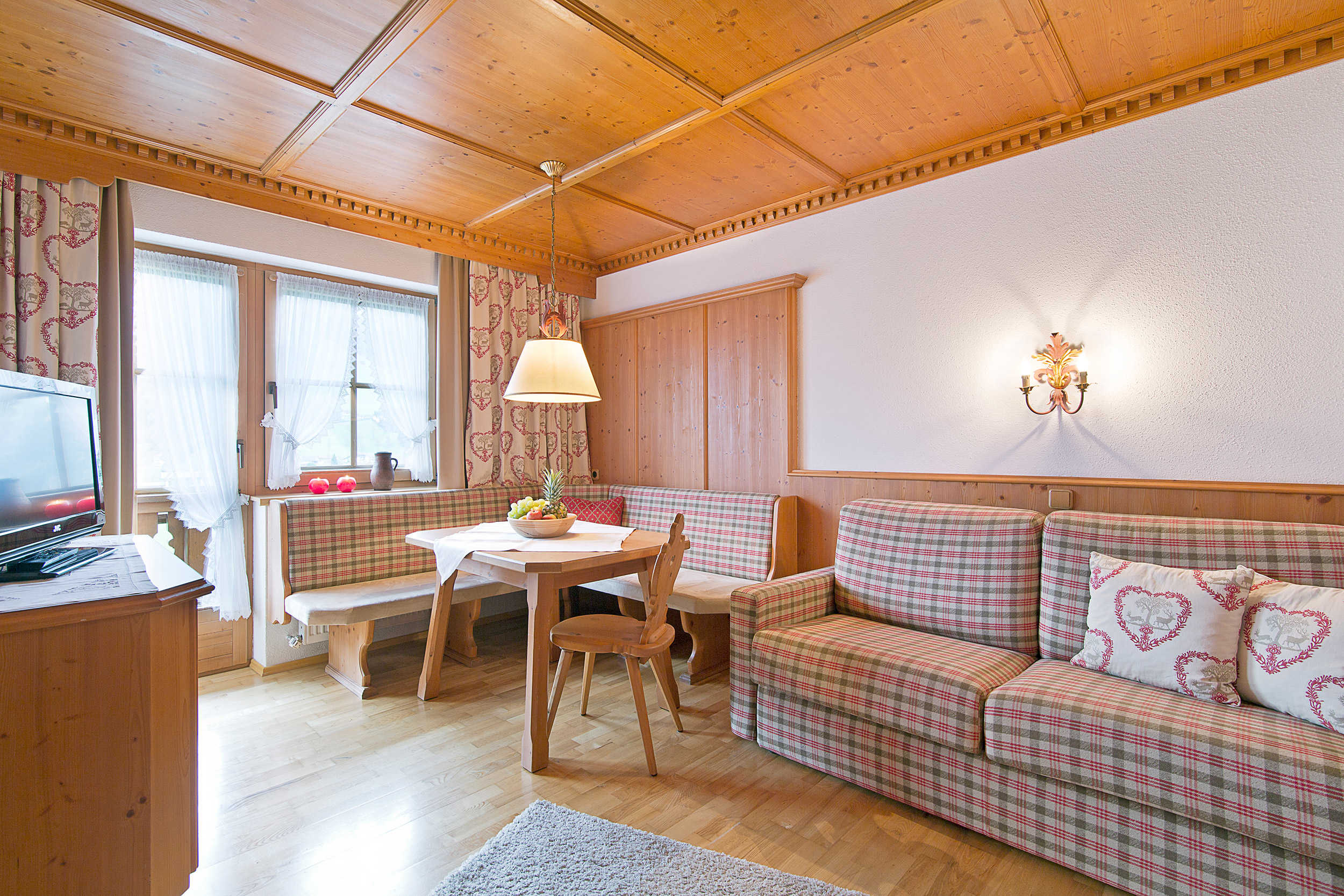 Trotz ruhiger Lage sind Sie nur 1 km vom Ortszentrum entfernt. Unsere Ferienwohnungen sind sehr gemütlich und mit viel Holz eingerichtet. Sie müssen auch während Ihres Urlaubs auf keinerlei Luxus verzichten.