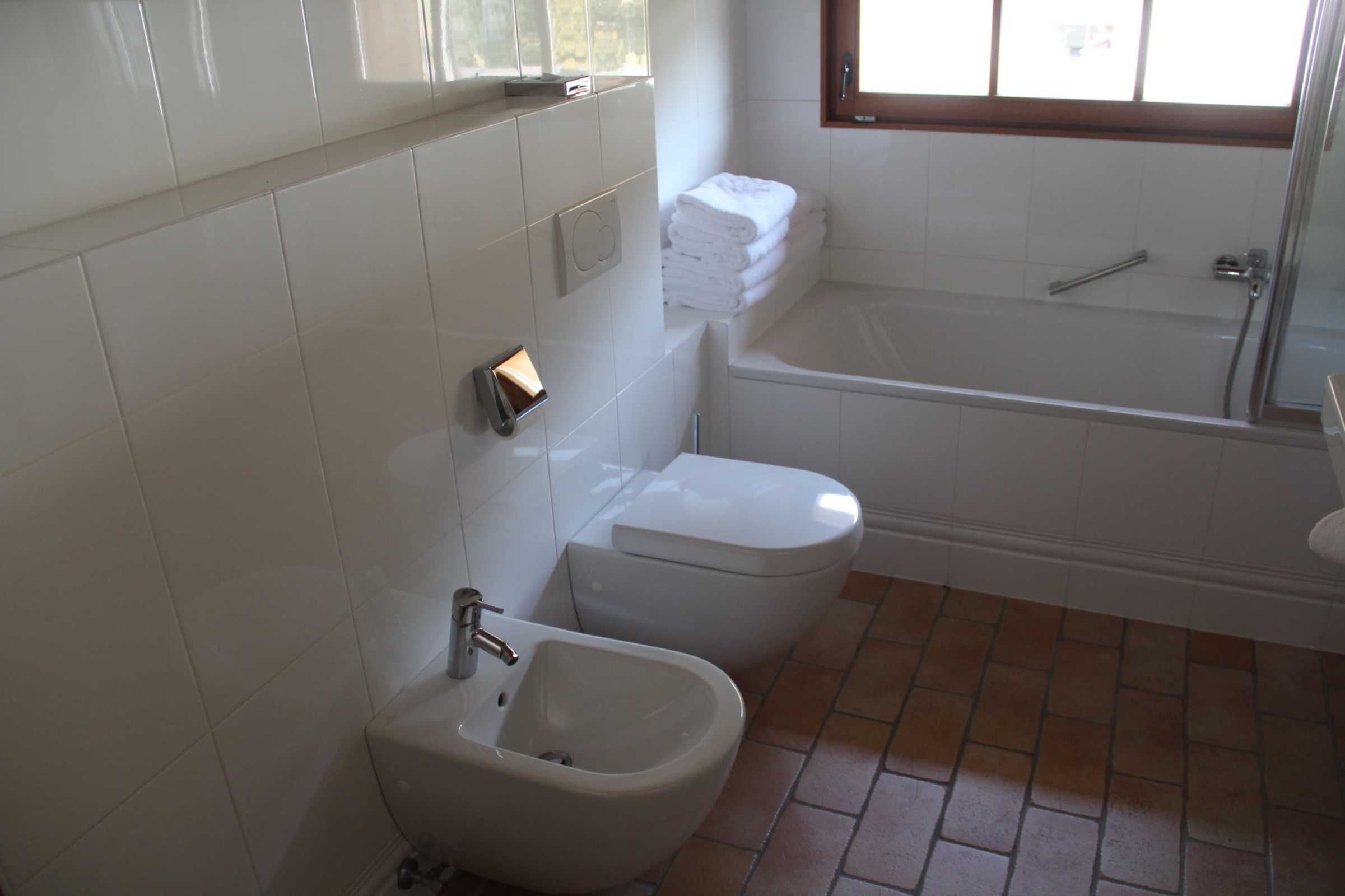 Die großen Boxspringbetten sind mit feiner, weißer Bettwäsche bezogen und in den modernen, hochwertig ausgestatteten Bädern liegen flauschige, gewärmte* weiße Handtücher bereit.