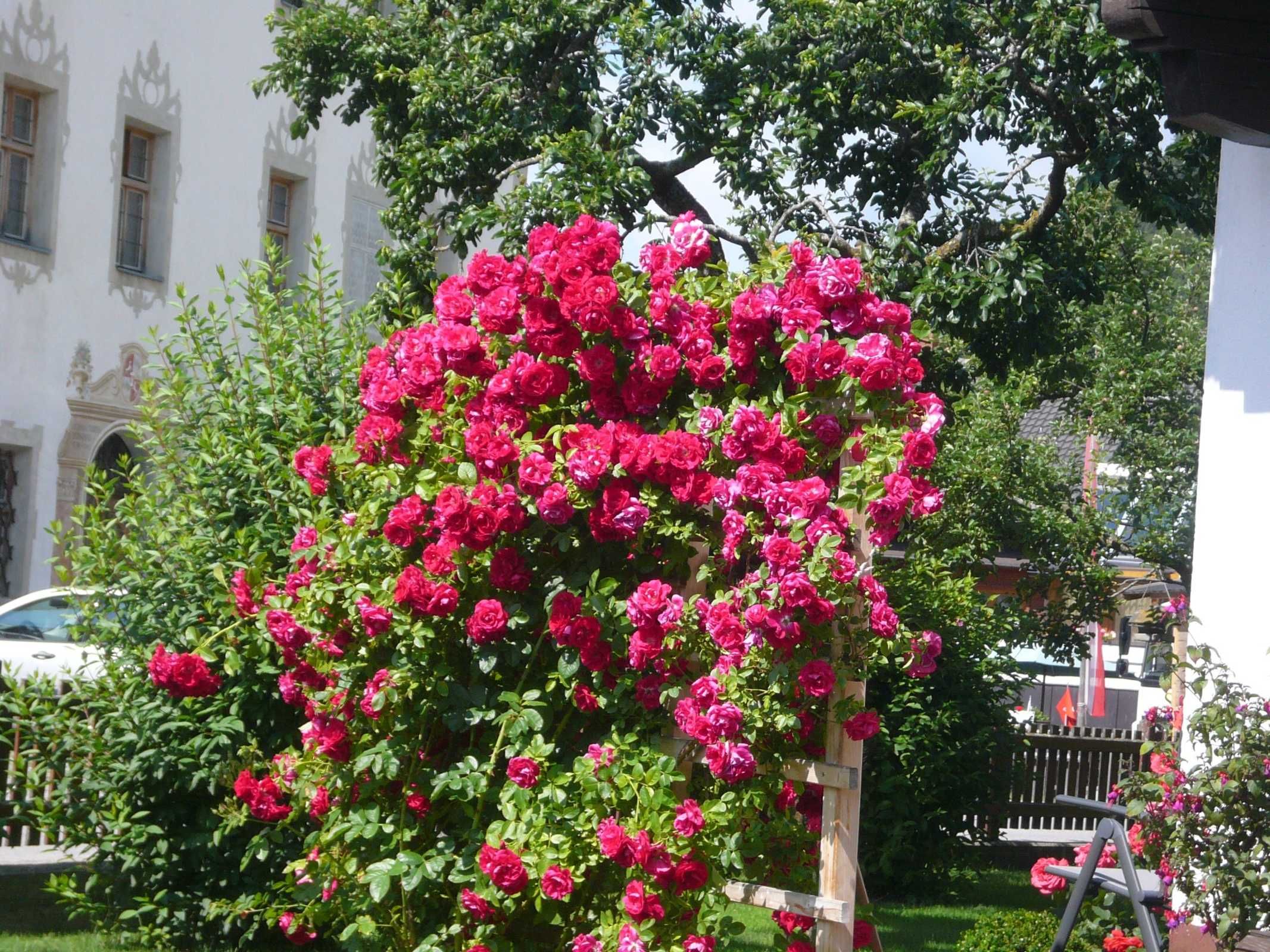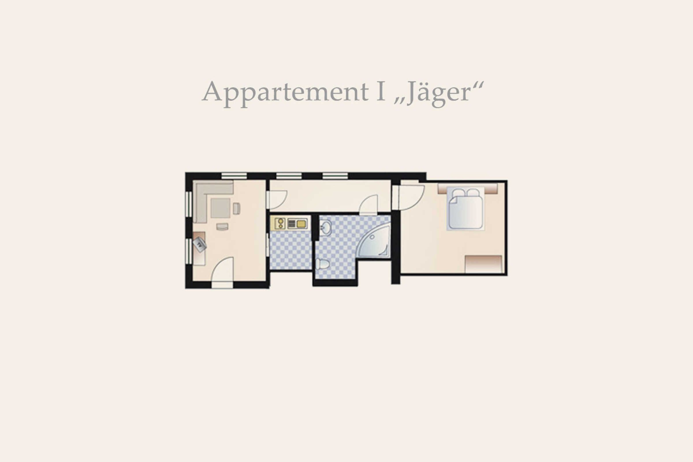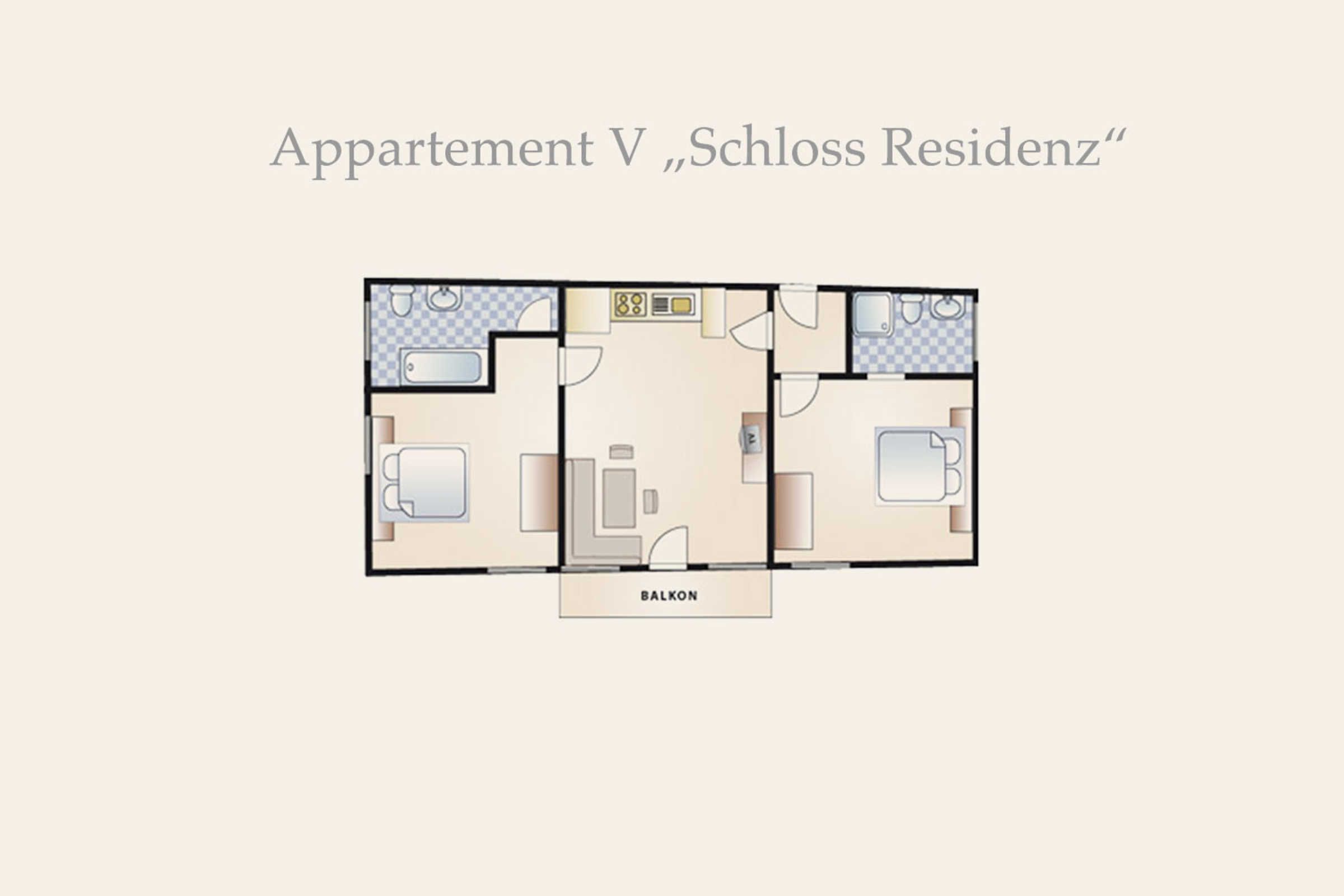 Die Schloss Residenz ist das größte Appartement des Hauses und besteht aus zwei Doppelschlafzimmern mit jeweils einem eigenen Badezimmer. Das großzügige Wohn- und Eßzimmer besitzt durch die hohe sichtbare Balkendecke und den privaten Balkon ein spezielles Landhausflair.