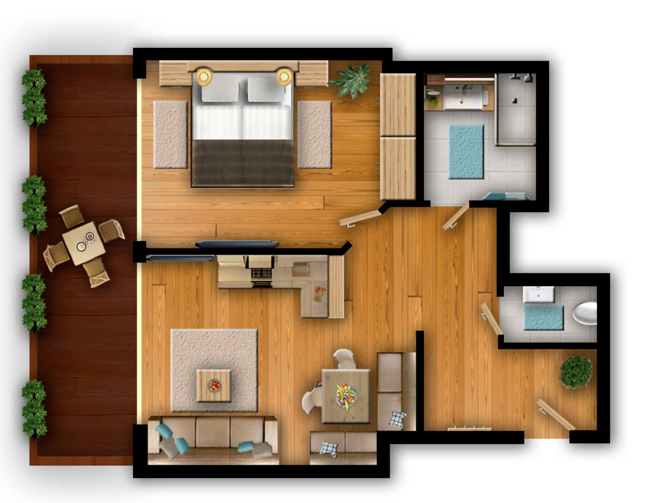 ca. 43 m², 1 Schlafzimmer ( Boxspringbett 180x200), gemütlicher Wohnbereich, Esstisch, Couch mit einer ausgezeichneten Schlafmöglichkeit. Die Wohnung hat eine voll ausgestattete Wohn-Küche, Nespresso Kaffee Maschine, Balkon, W-Lan, LED TV, Dusche und getrenntes WC.