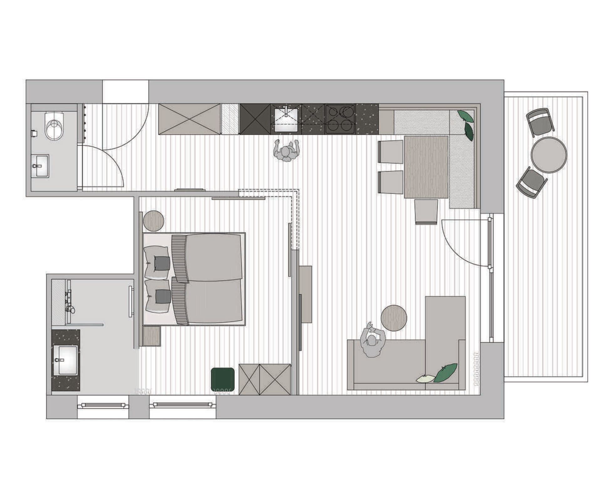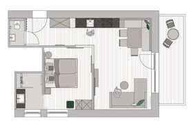 45 Quadratmeter für 2-4 Personen bestehend aud einem Appartement mit 1 Doppelzimmer. 1 Schlafzimmer mit Doppelbett und 1 Schlafsofa für 2 Personen. 1 Badezimmer mit Dusche und WC, TV inkl. Flatscreen, Radio, free Wifi, Doppelbett (Kingsize), Balkon. Ausziehbare Couch, Küche mit Geschirrspüler, Mikrowelle und Nespresso Kaffemaschine, Kühlschrank, Wohnbereich mit Essecke